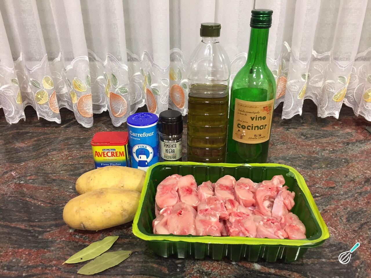 Comece por juntar todos os ingredientes que vai precisar para esta receita de coelho.