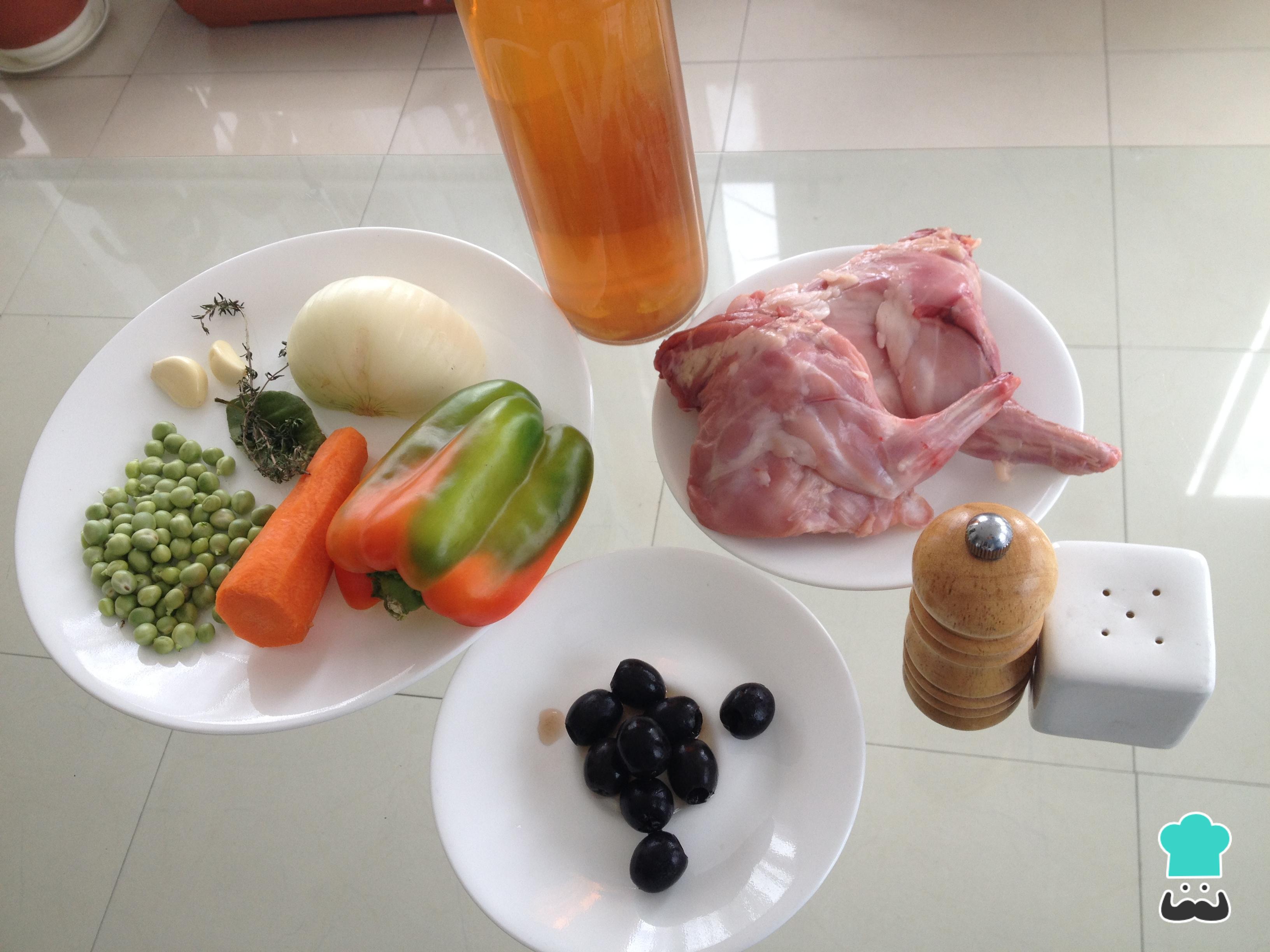 O primeiro passo é reunir os ingredientes desta receita de coelho estufado com legumes.