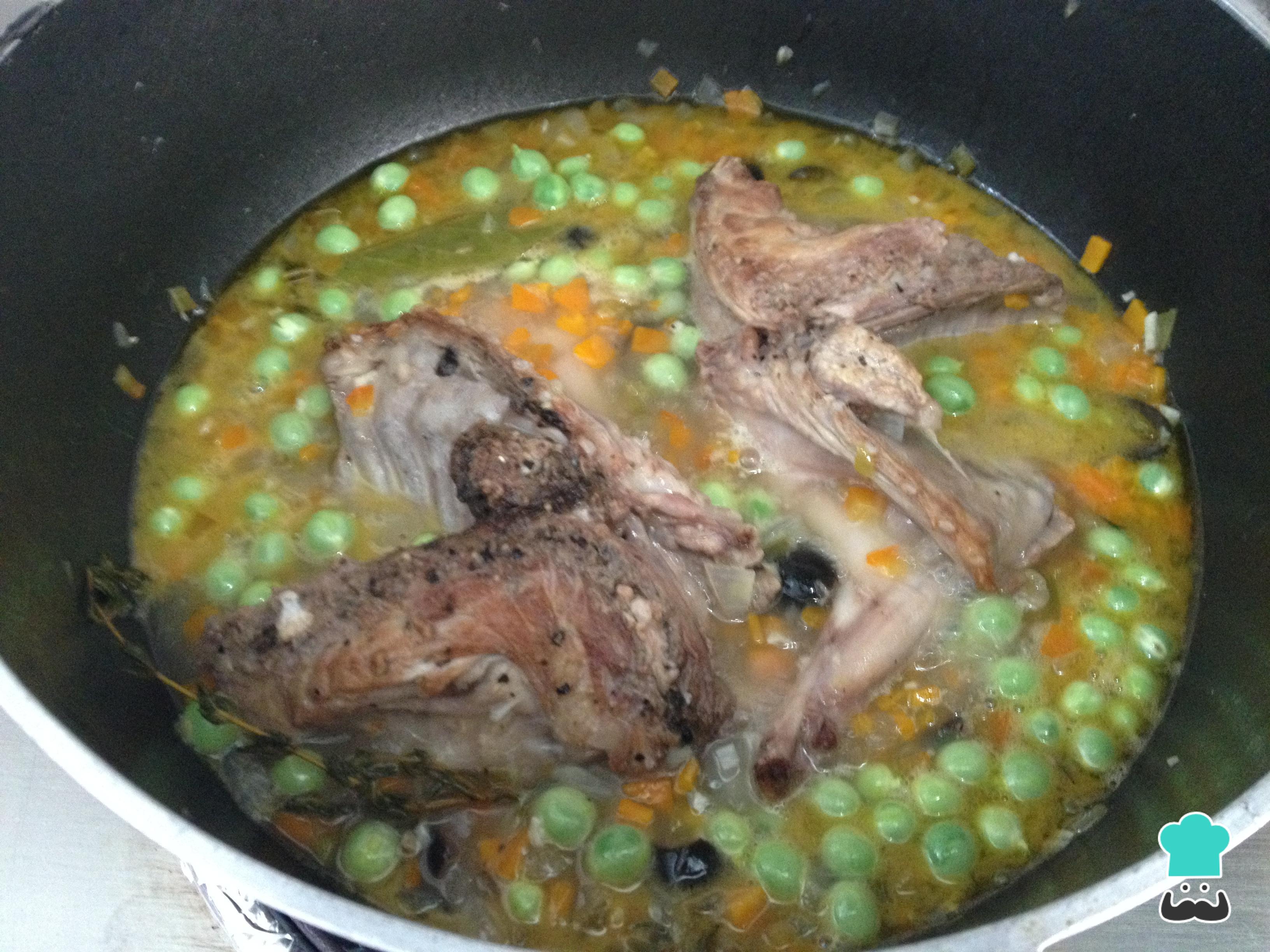 Finalmente corrija o sabor com sal e a pimenta e sirva esta receita de coelho estufado com ervilhas. Bom apetite!