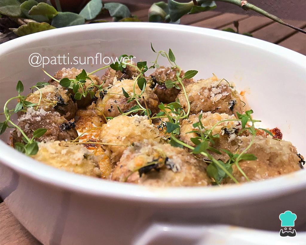 Passado os 10 minutos retire o papel alumínio e salpique a panko ou a farinha de rosca junto com o parmesão, para conseguir uma casquinha crocante. Volte ao forno por mais 10 minutos, até tudo ficar douradinho.