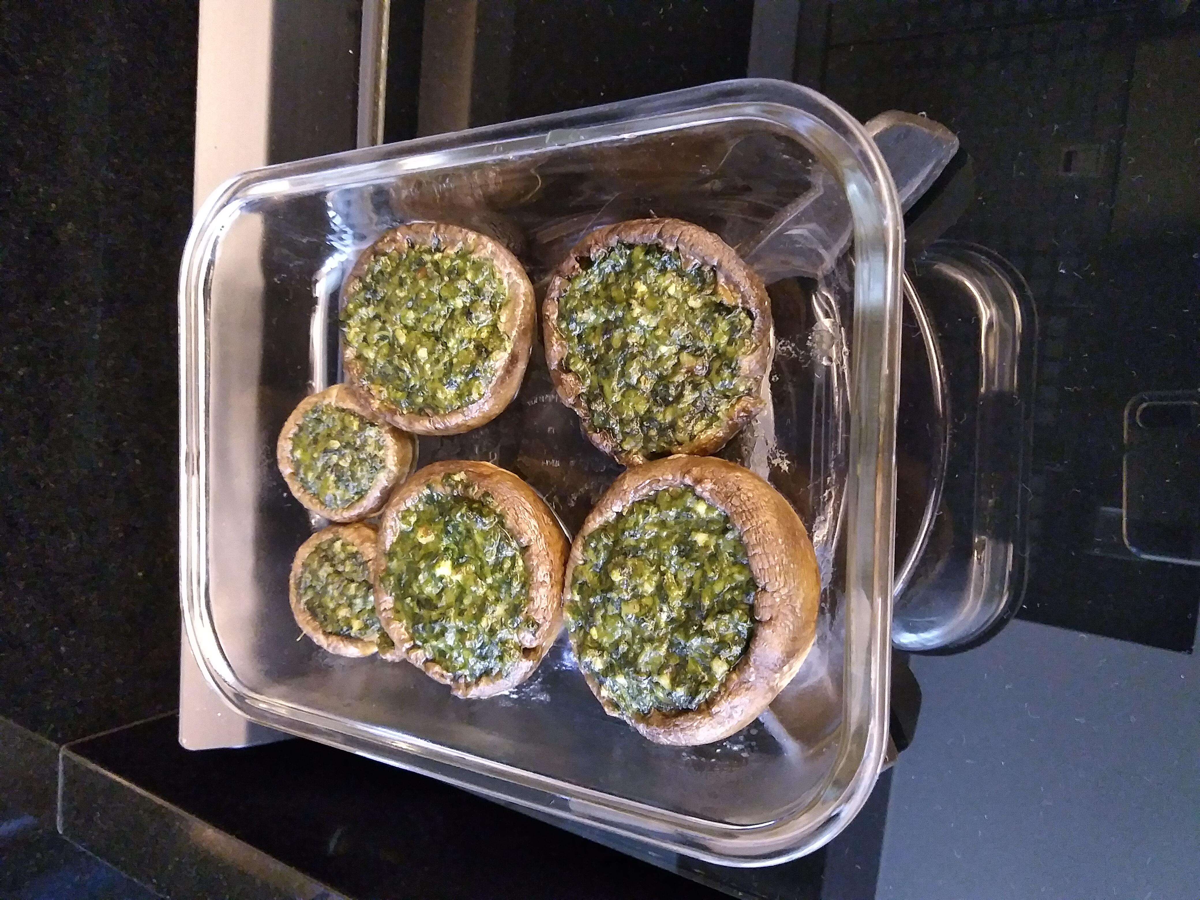 Quando o cogumelo Paris recheado com queijo tiver reduzido para metade do tamanho, retire-o do forno e está pronto a servir!