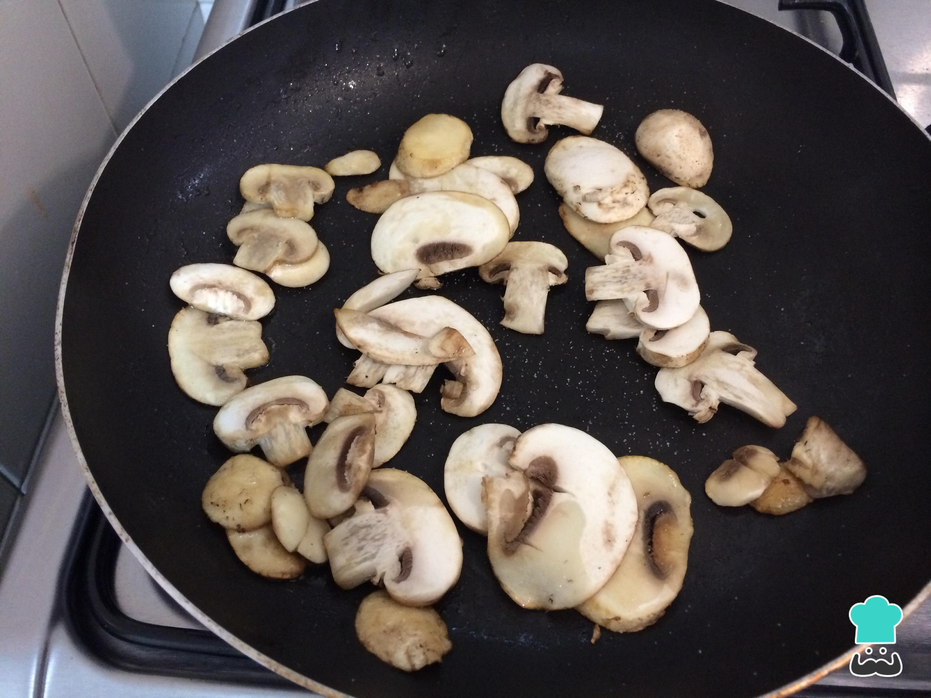 Corte os cogumelos em lâminas e salteie numa frigideira em fogo alto com um pouco de azeite. Retire quando estiverem dourados e tempere com um pouco de sal.