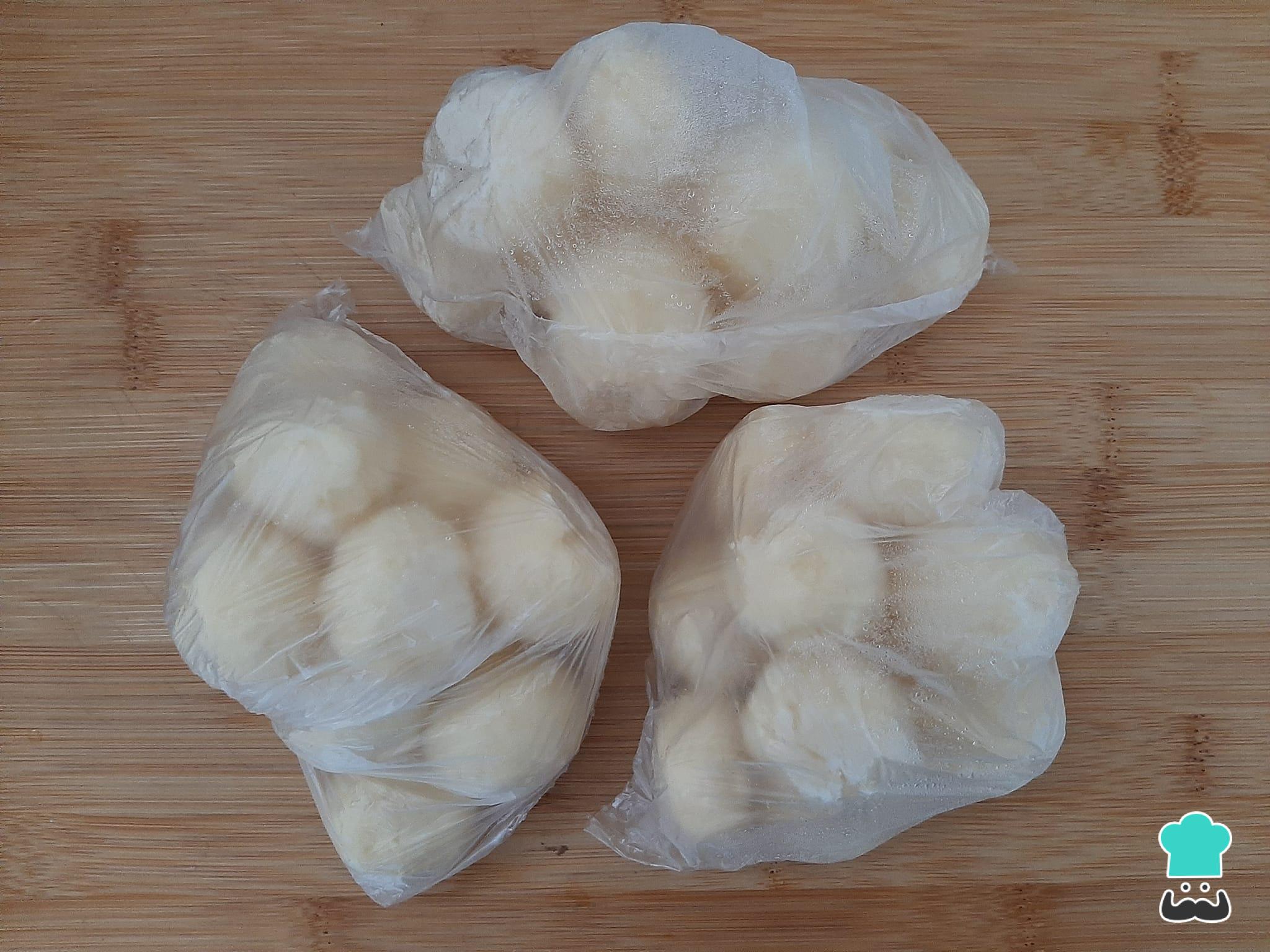 Depois desse processo, separe porções em saquinhos ou em vasilhas com tampa e armazene seus pães de queijo no congelador por até 2 meses.