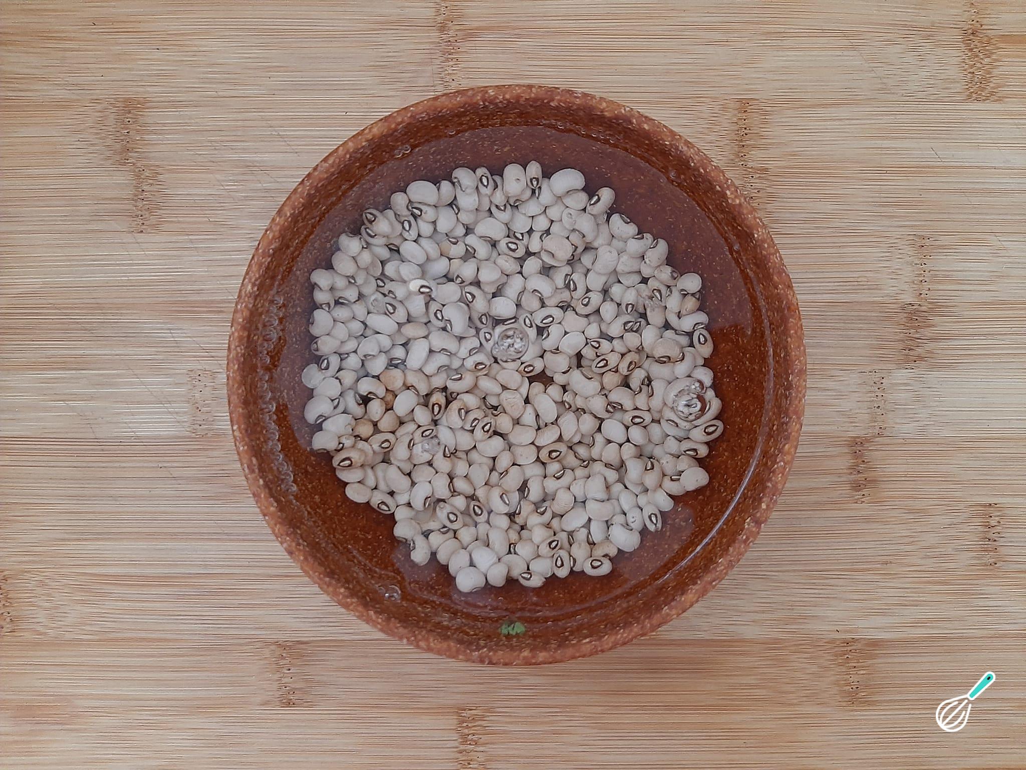 Primeiro passos de como fazer salada de feijão fradinho: escolha os melhores grãos de feijão e em seguida, coloque-os de molho na água por 2 horas.