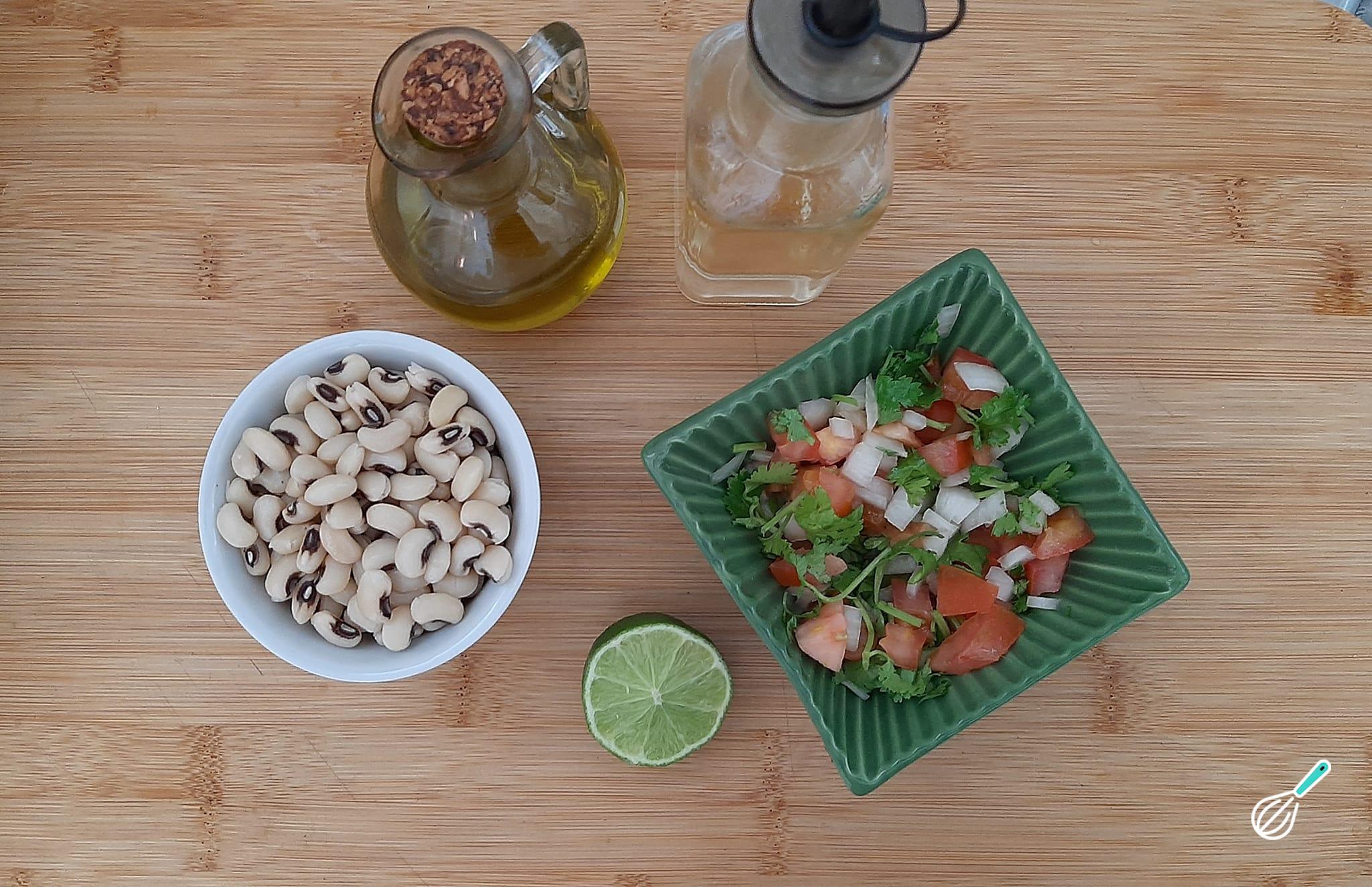 Dica: Os demais ingredientes apresentados são para sugestão de uma vinagrete com o feijão fradinho.