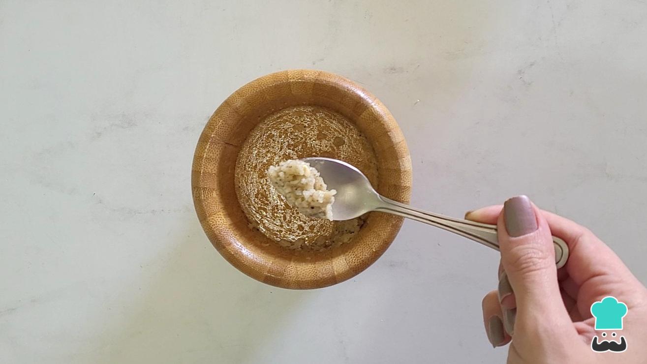 Em um pilão, coloque o alho, o sal e a pimenta-do-reino.