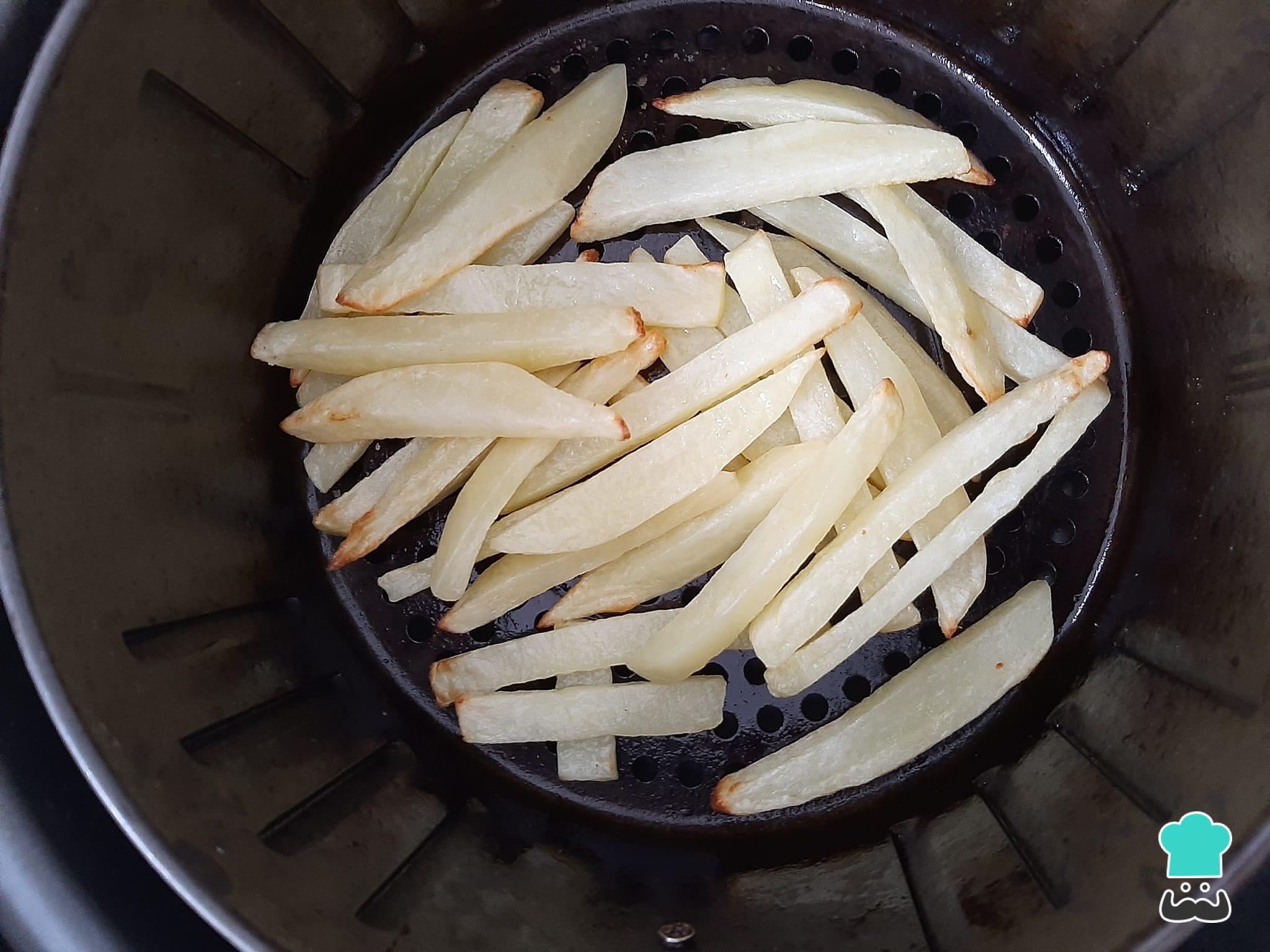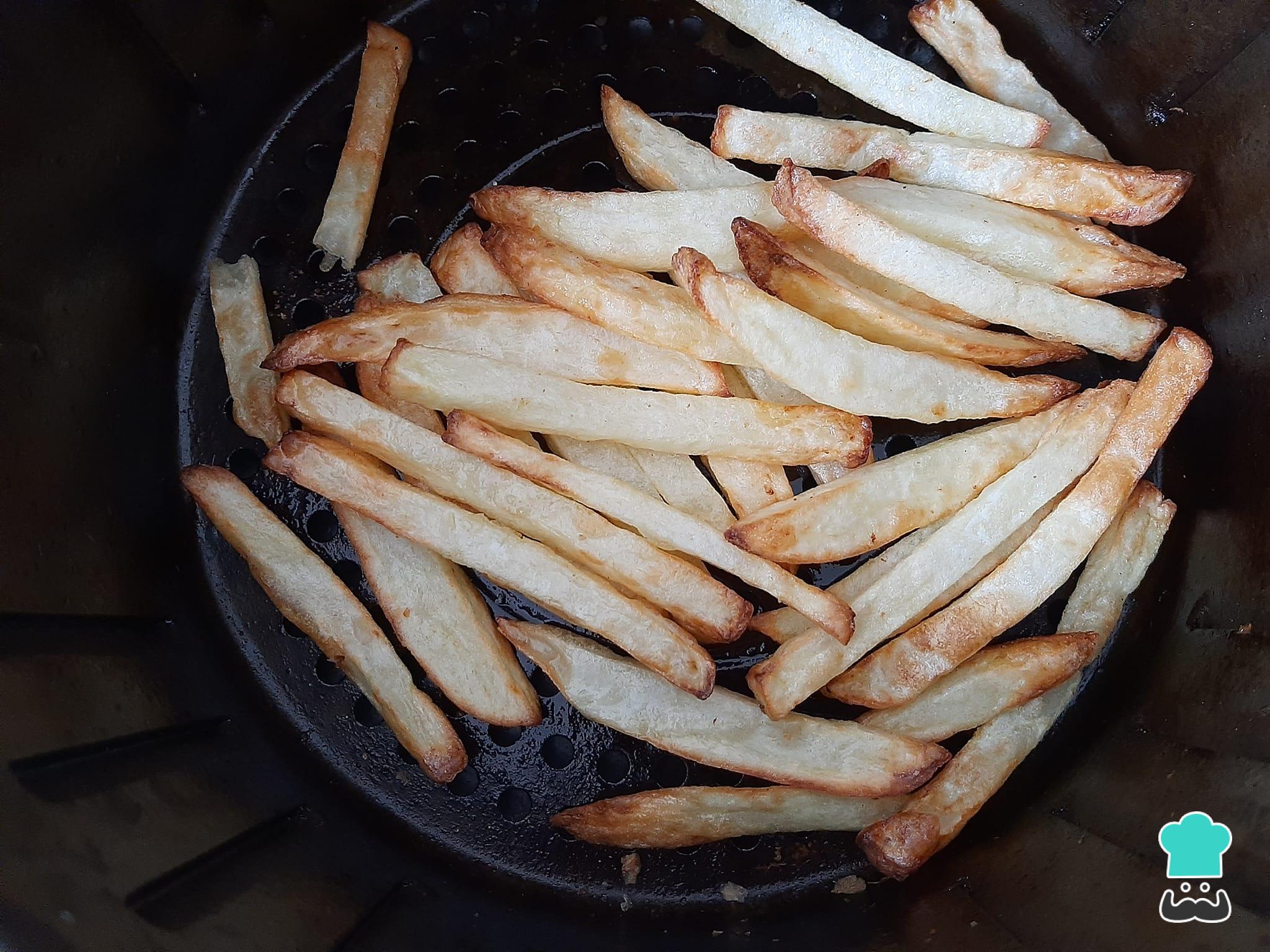O truque principal vem agora! A cada 5 ou 7 minutos, abra o aparelho e sacuda a cestinha para garantir que os palitos fiquem soltinhos e fritem uniformemente.