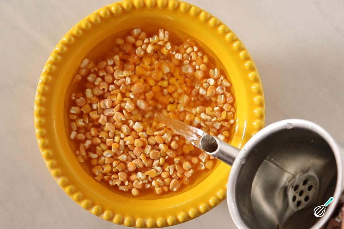 Comece deixando a canjica de molho na água morna por pelo menos duas horas.