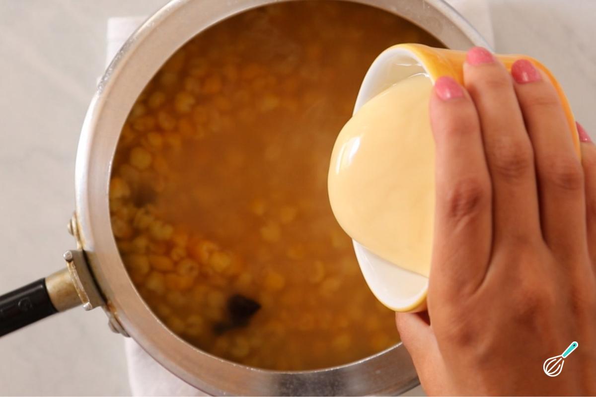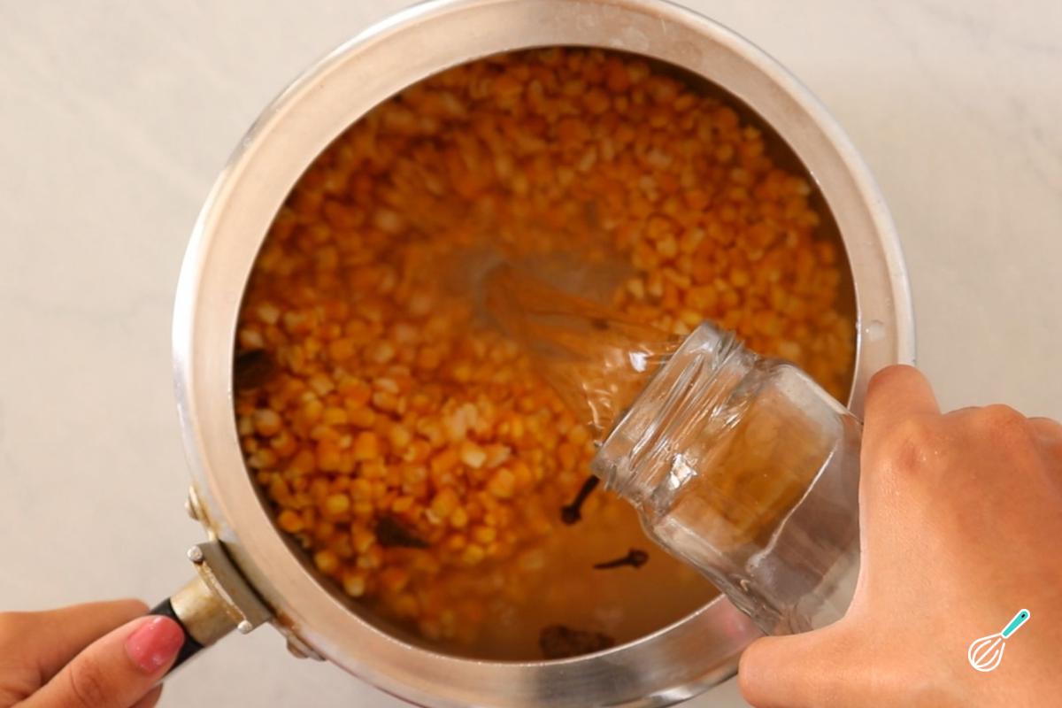 - Cozinhe na panela de pressão por 40–50 minutos com bastante água, até o milho ficar bem macio.