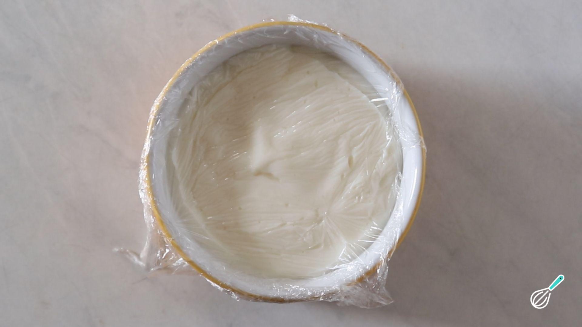 Coloque em um pote, cubra com plástico filme em contato para não criar película e leve para gelar.