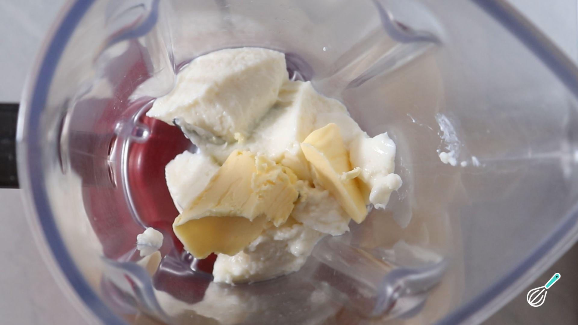 Quando estiver bem gelado, coloque esse creme no liquidificador, junte a manteiga gelada e bata muito bem por cerca de 5 minutos até ficar bem cremoso e sedoso.