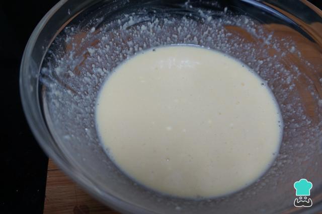 Misture muito bem os ingredientes até que não haja grumos. Você pode bater com o liquidificador ou misturar à mão. Em seguida, deixe a massa descansar por cerca de 20 minutos na geladeira.