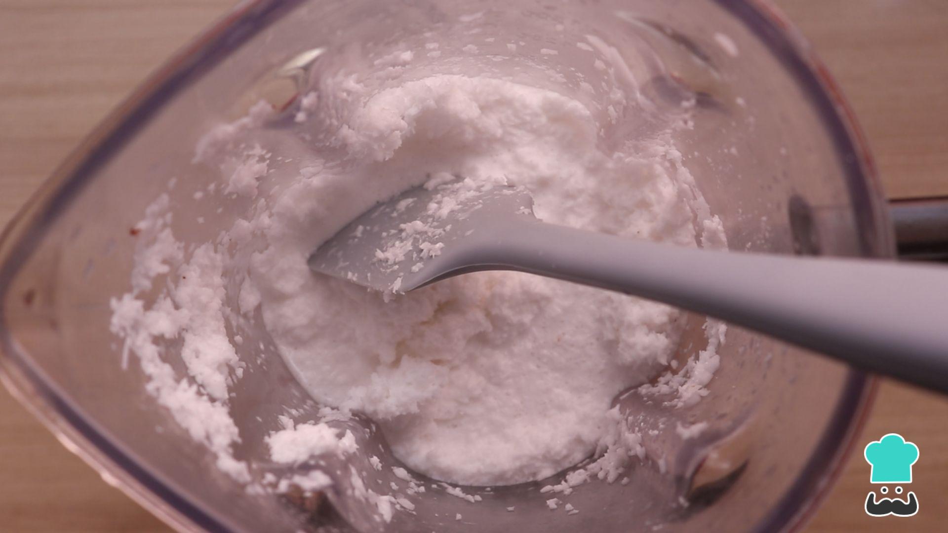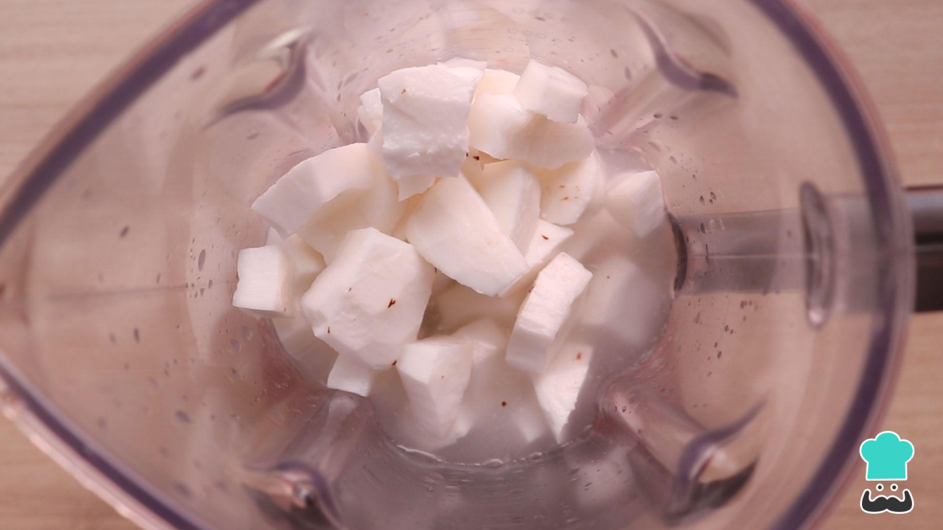 O primeiro passo para fazer a sua farinha de coco é tirar a polpa do coco e colocar no liquidificador com a água.