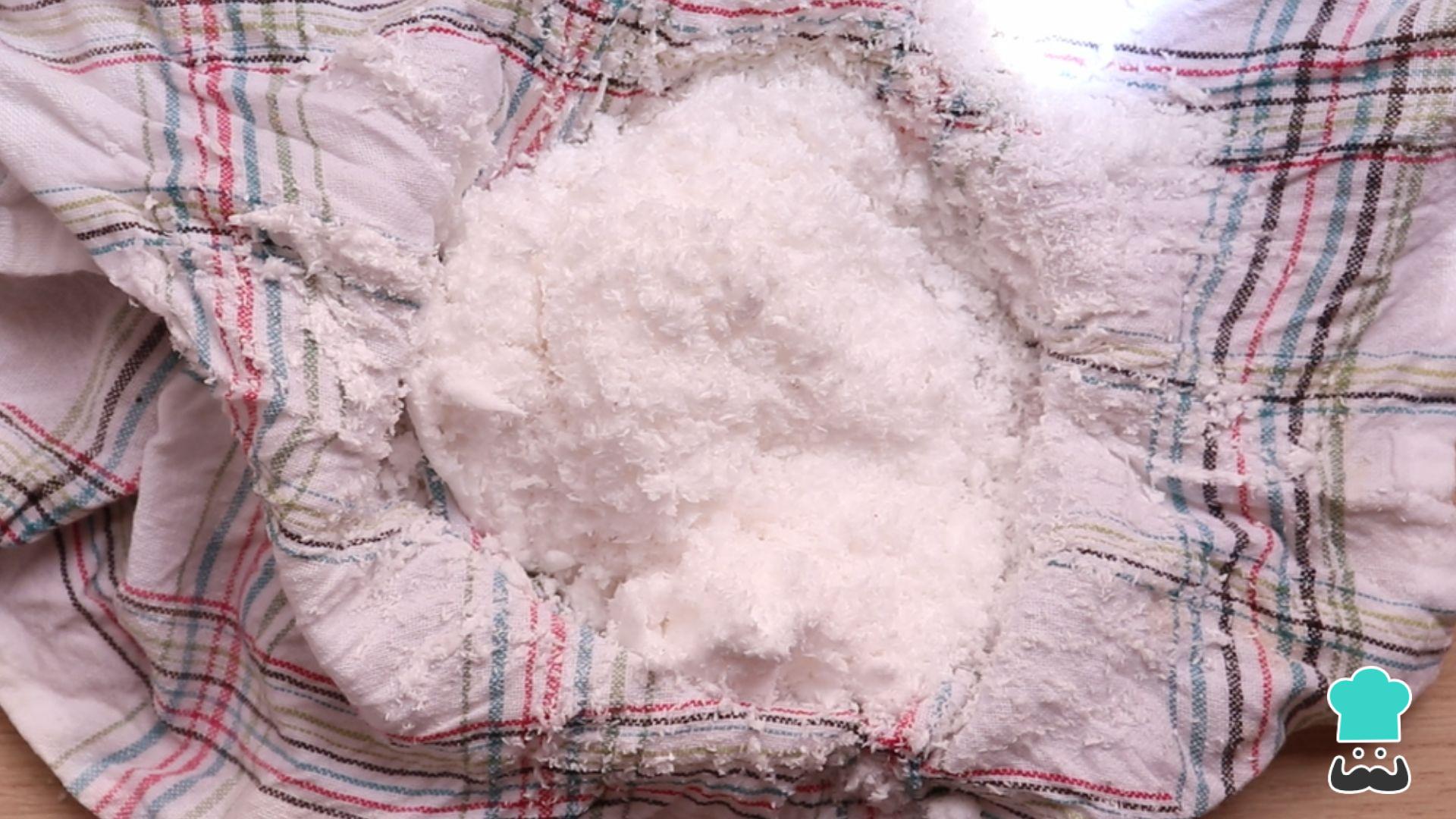 Dica: Esse líquido que saiu do bagaço é nada mais nada menos que leite de coco caseiro! Use para fazer diversas receitas ou guarde por até 3 dias na geladeira.