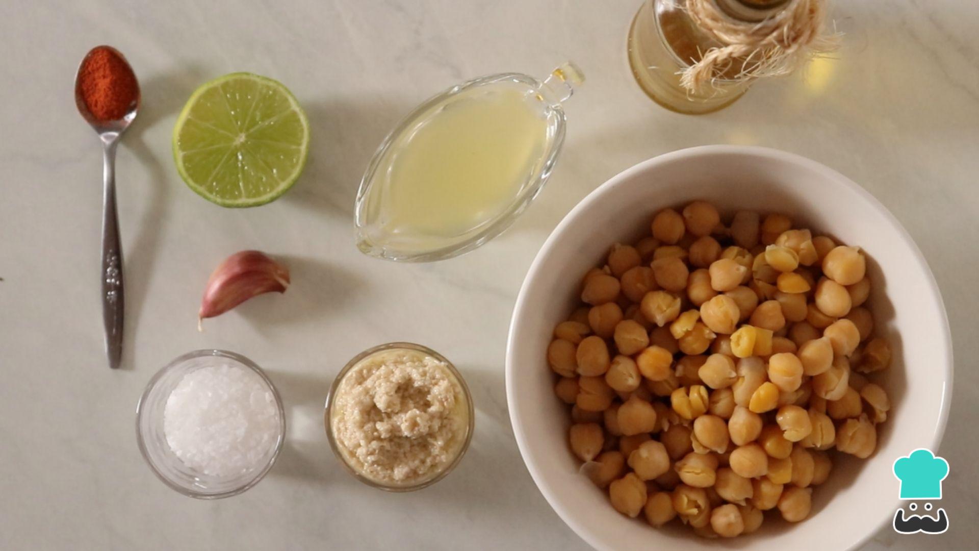 Separe os ingredientes. Para fazer essa receita, o grão de bico já deve estar cozido. Reserve uma xícara de chá do caldo do cozimento para usar no próximo passo. Tanto o humus quanto o tahini são alimentos típicos do Oriente Médio, mas que também já se tornou comum de se encontrar nos supermercados brasileiros.