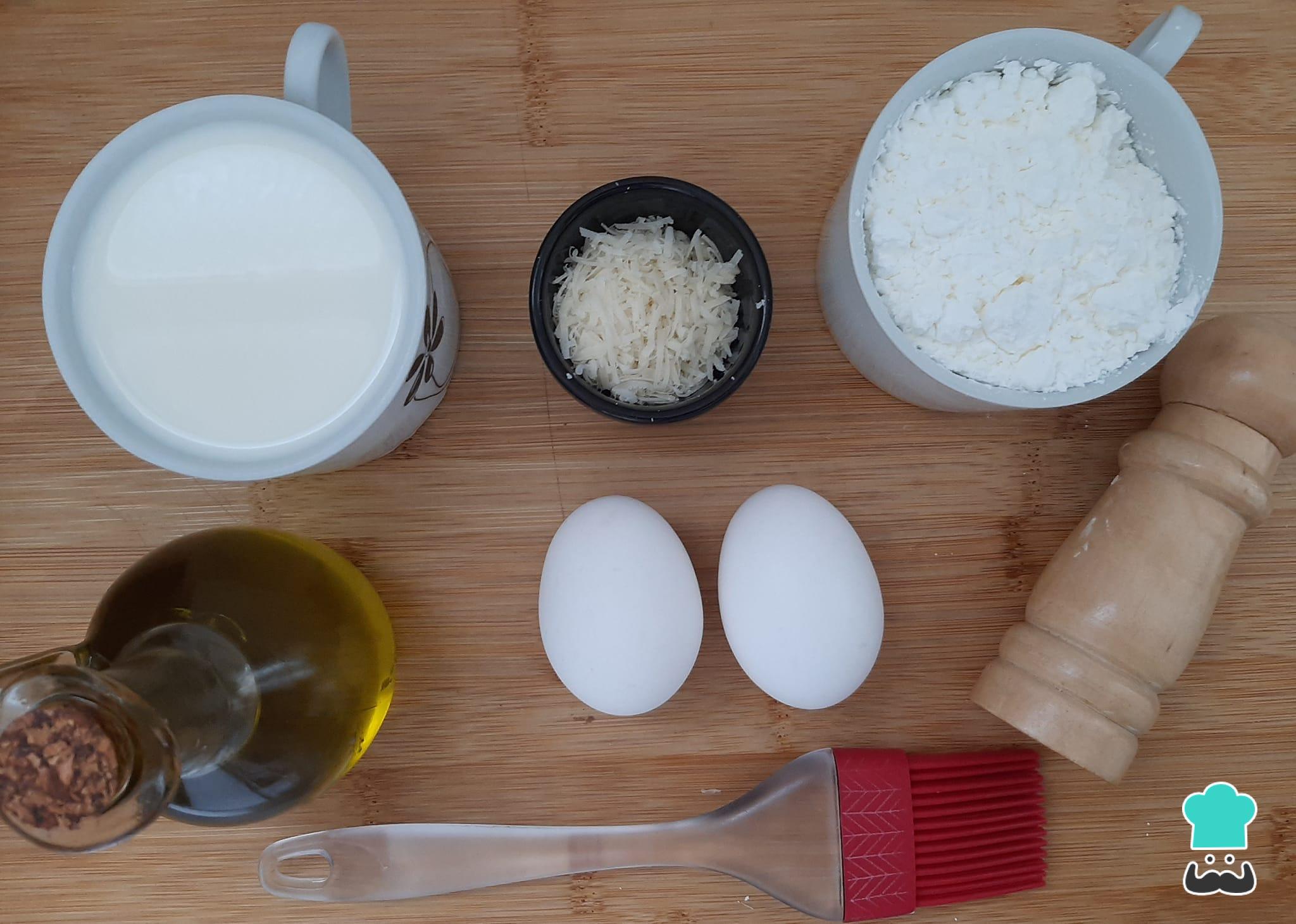 Separe todos os ingredientes necessários para preparar essa receita de panqueca simples salgada.