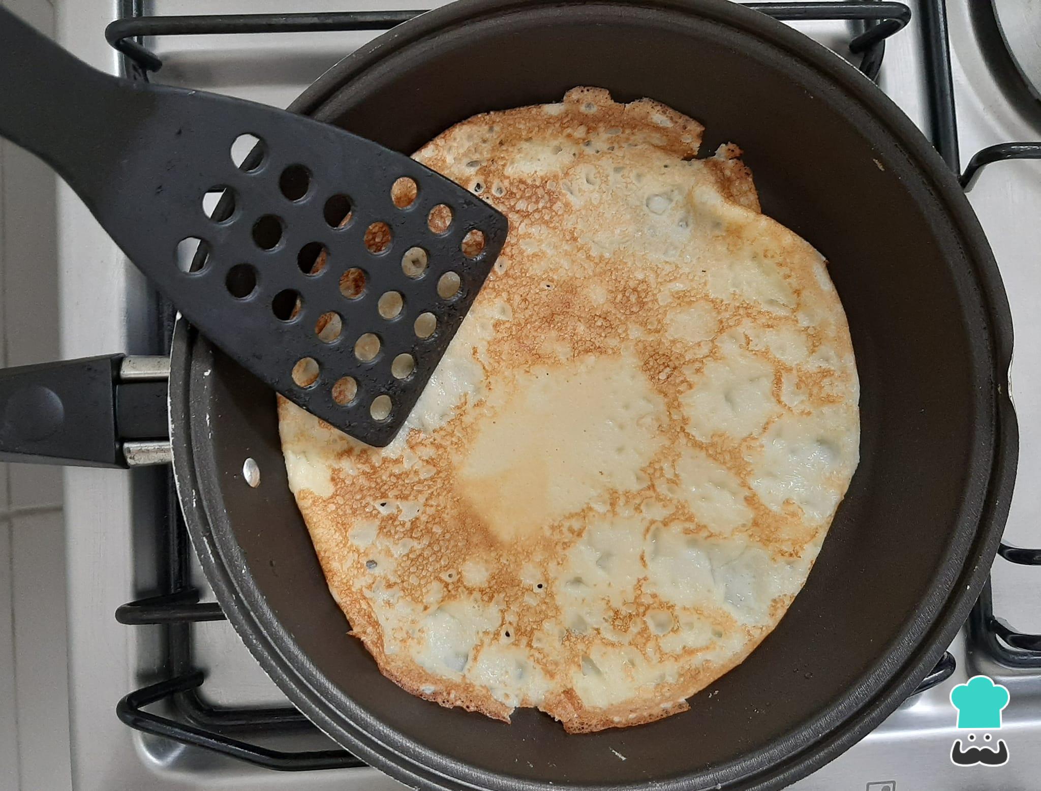 Vire o lado da panqueca com o auxílio de uma espátula e deixe refogar pelo mesmo tempo.