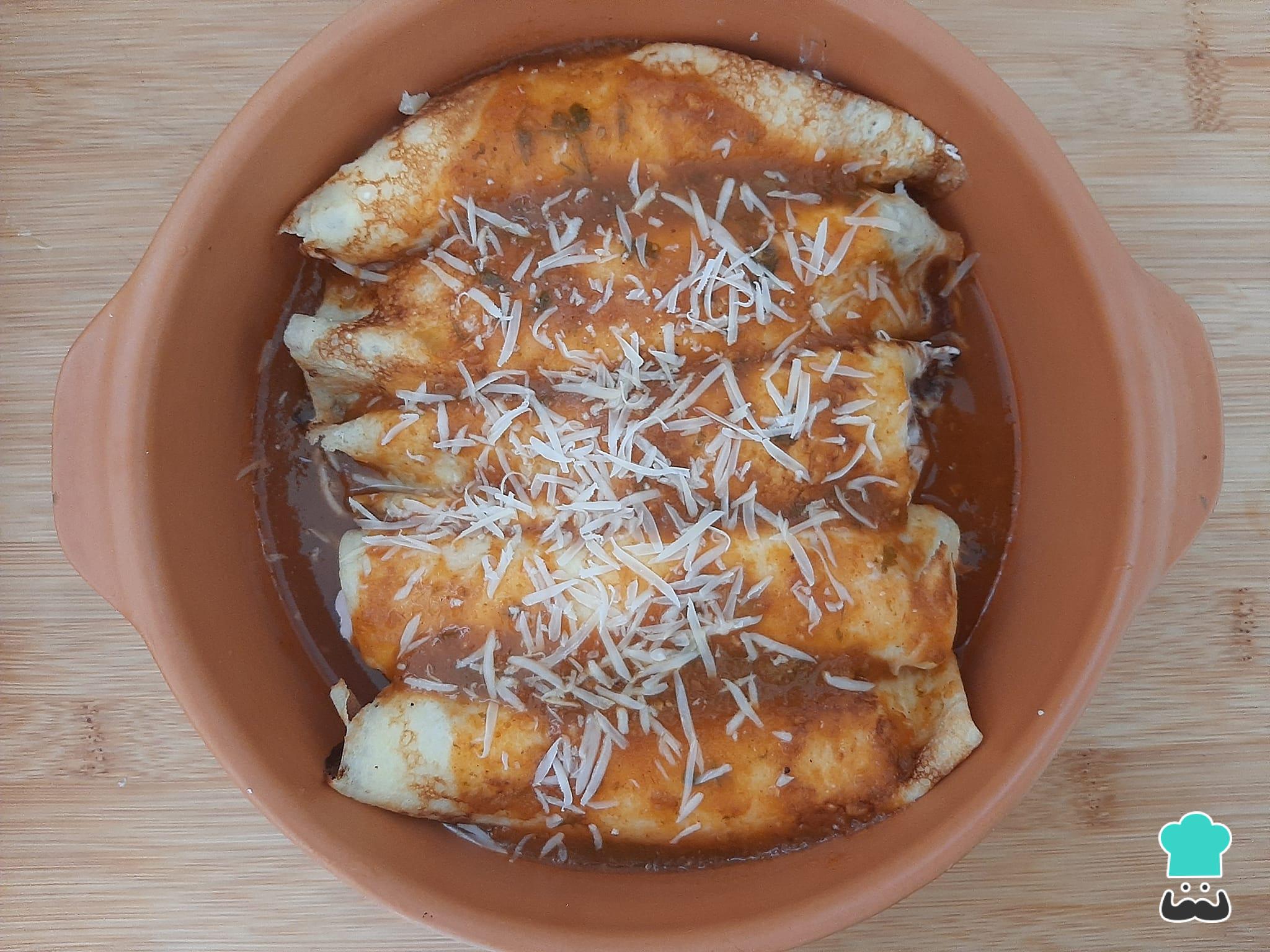 Se quiser preparar as panquecas gratinadas, enrole-as como rocamboles e acomode-as num refratário com o molho de sua preferência.