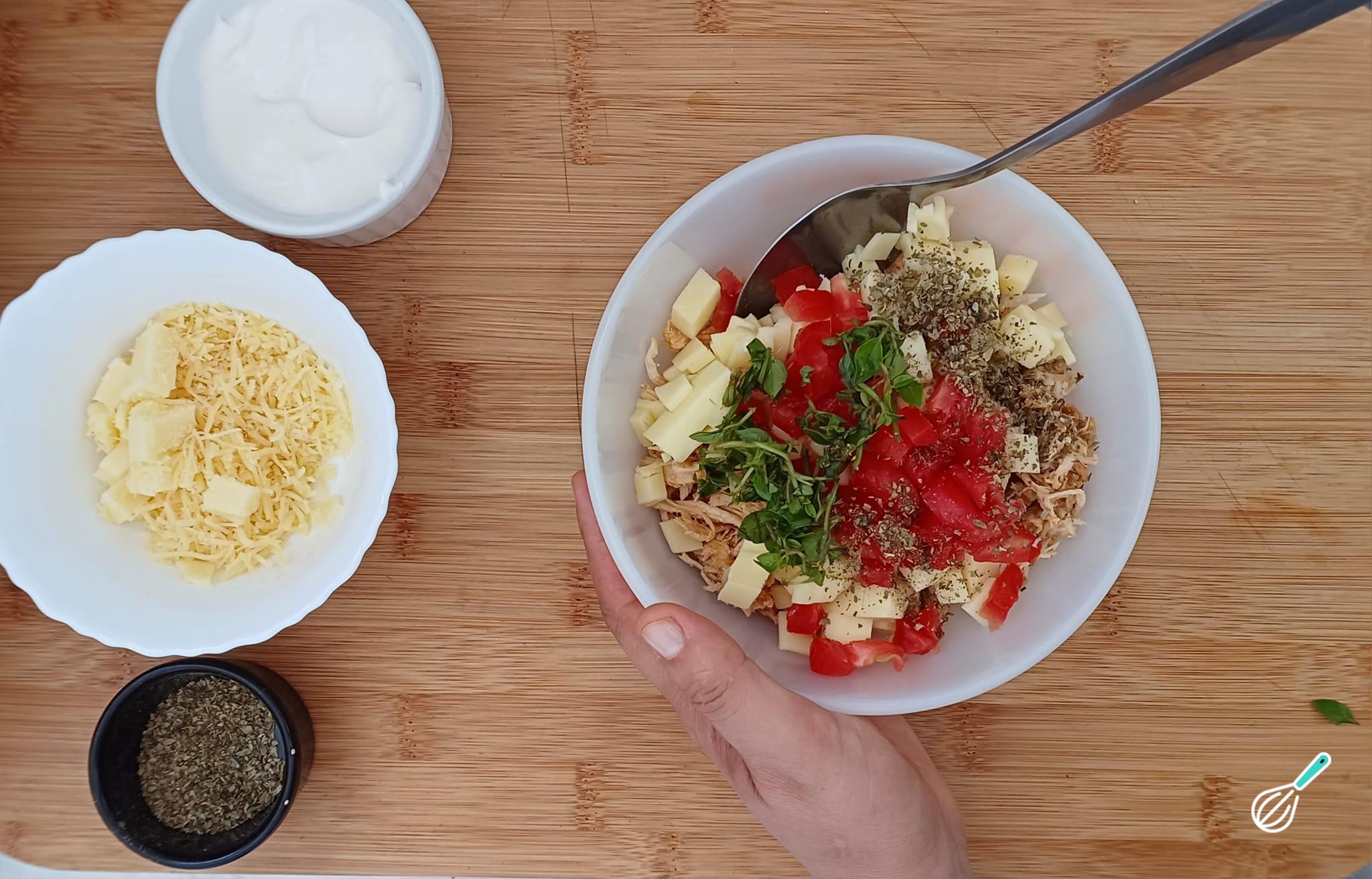 Dica: Você poderá substituir o frango cozido por outros recheio da sua preferência!