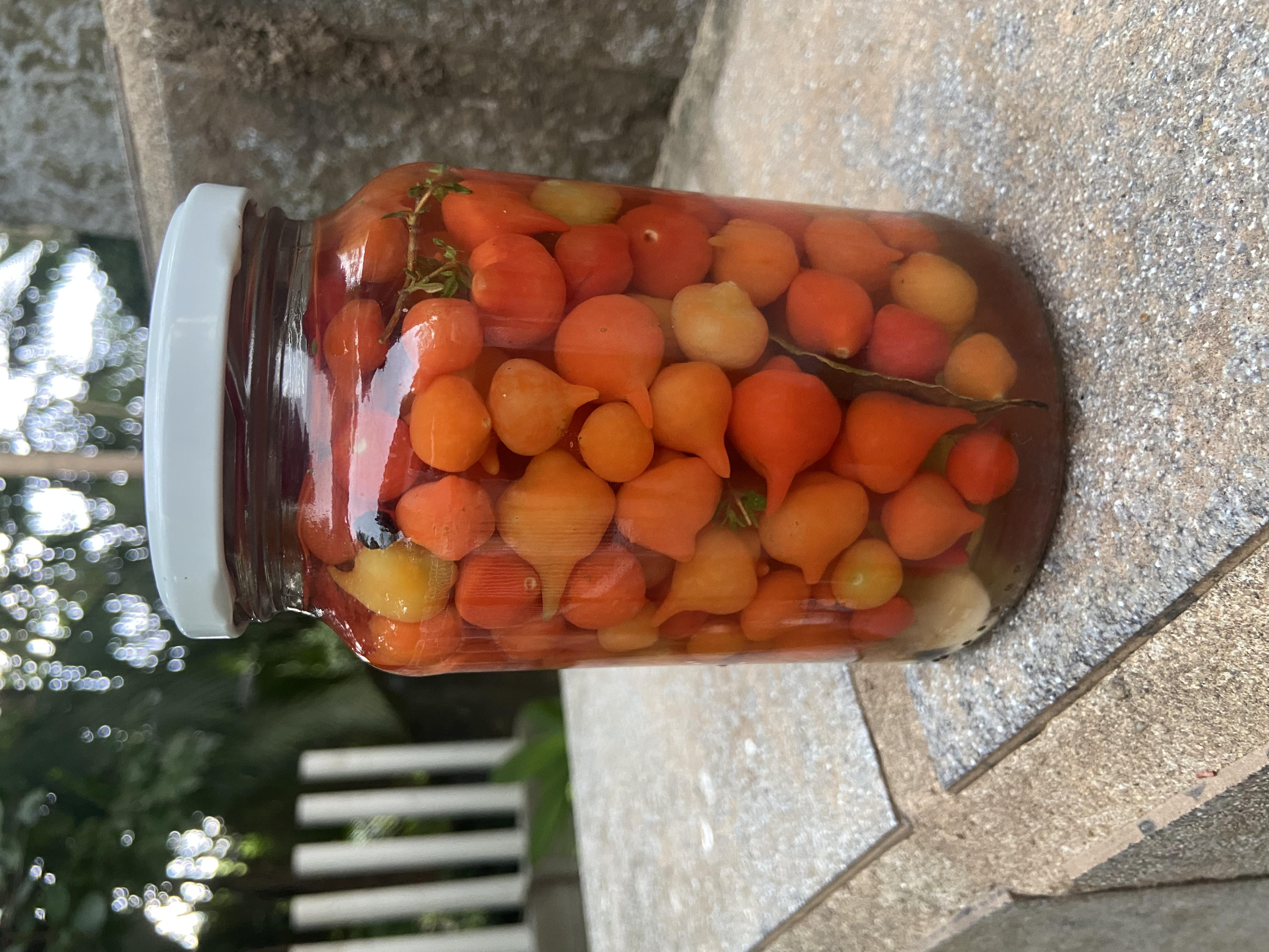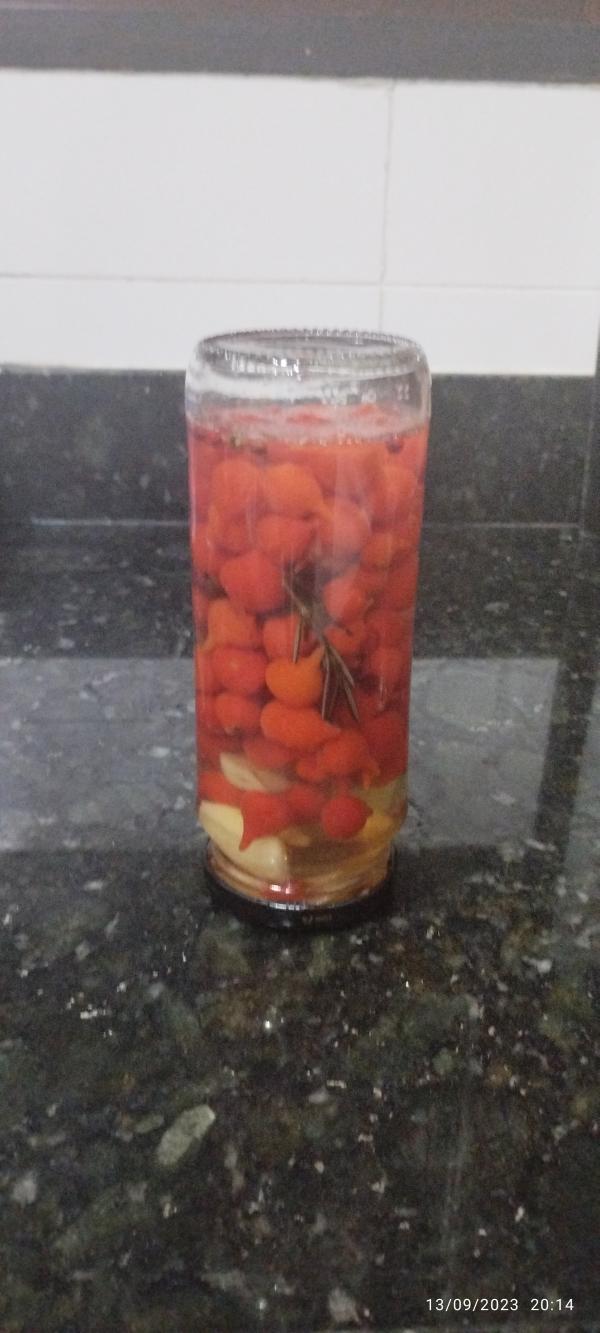 Tenho vários pés de pimenta biquinho plantada aqui em casa e sempre faço essa conserva. Fica maravilhosa!!!