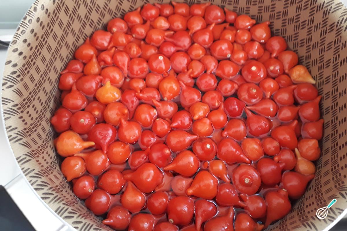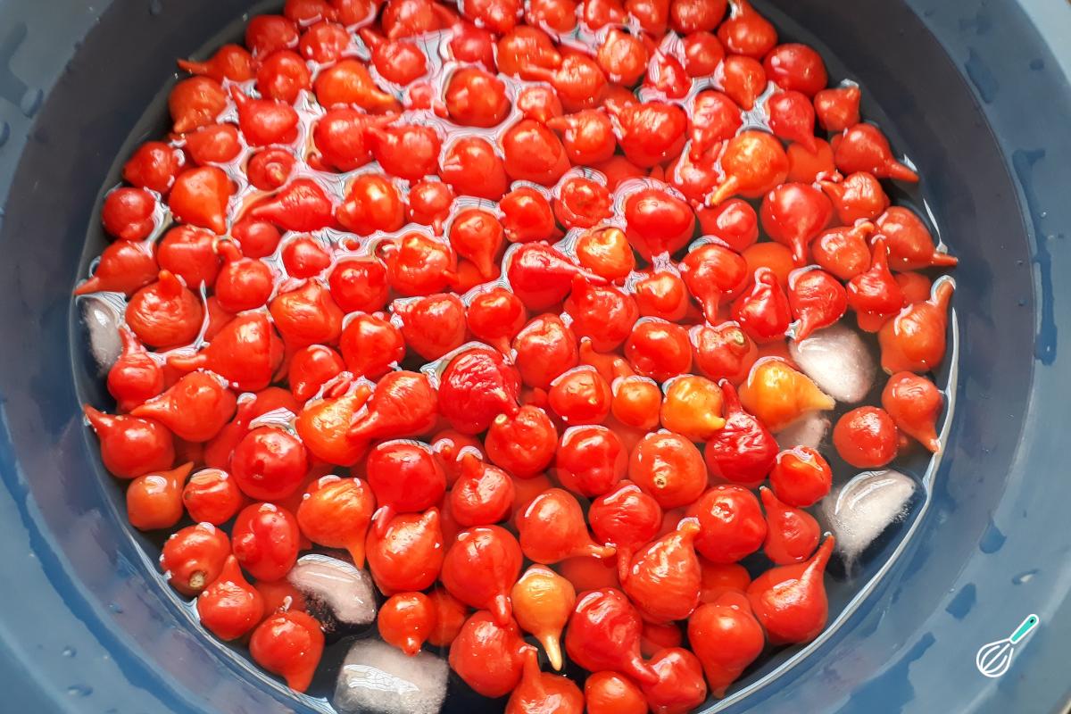 Dica: Esse processo chama branqueamento e garante que as pimentas mantêm sua cor e firmeza.