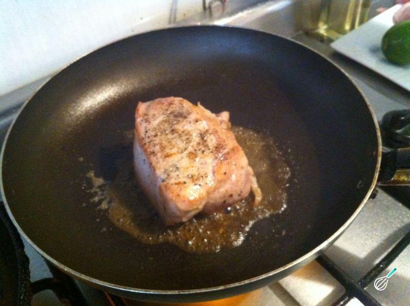 Leve ao fogo médio uma frigideira anti-aderente e doure o contra filé de todos os lados. Depois tampe, baixe o fogo e deixe cozinhar a carne.