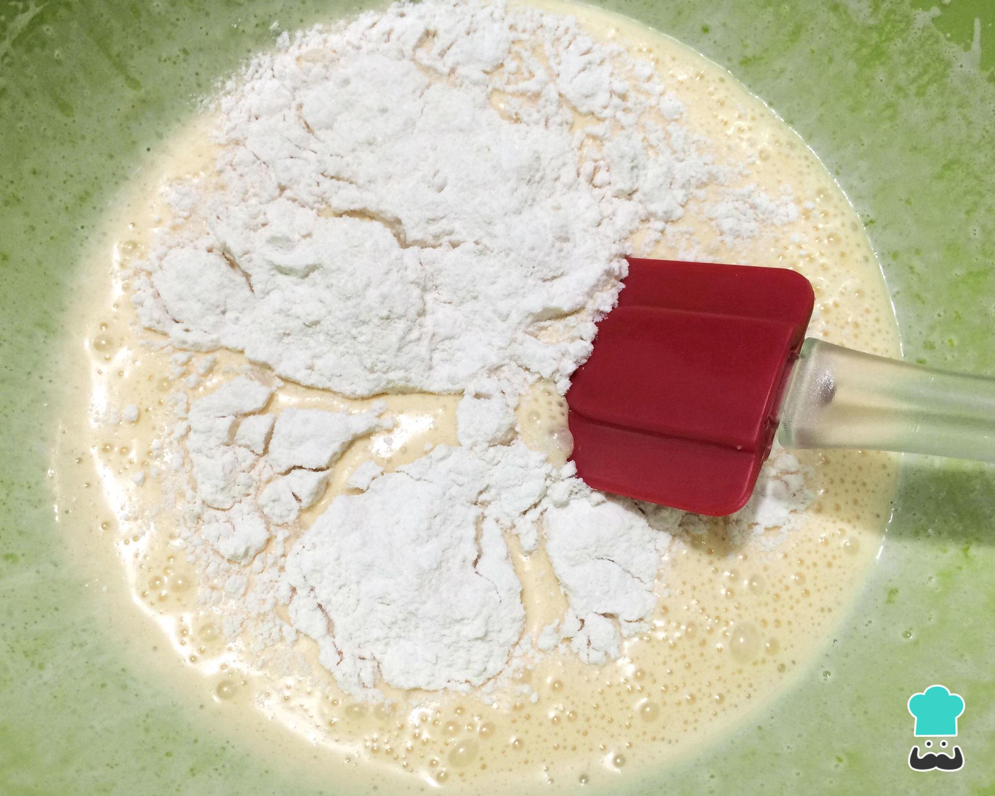 Acrescente o ovo e volte a bater. Em seguida coloque a farinha de arroz e o fermento, de preferência peneirados juntos, e misture muito bem com uma espátula ou com as mãos até obter uma massa compacta.