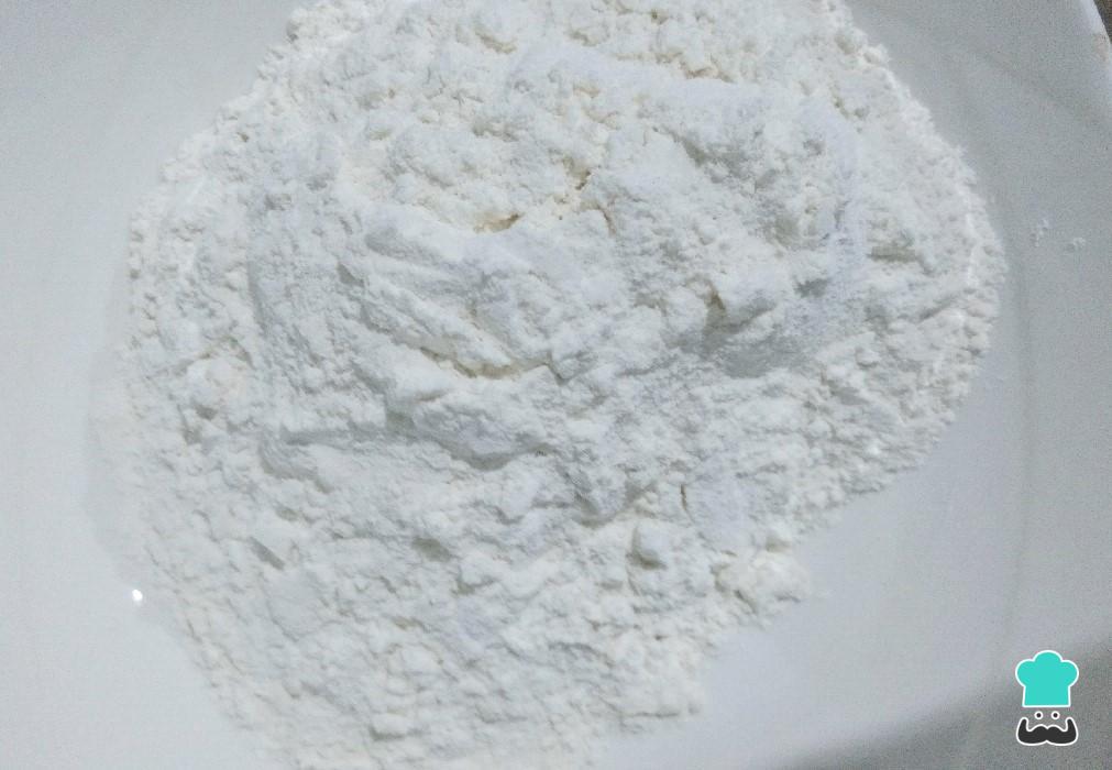 À parte peneire a farinha e o bicarbonato para uma tigela e acrescente o sal. Fazemos isso para evitar que se formem grumos na massa. Junte aos ingredientes anteriores e misture muito bem até virar uma massa suave e ligeiramente grudenta.