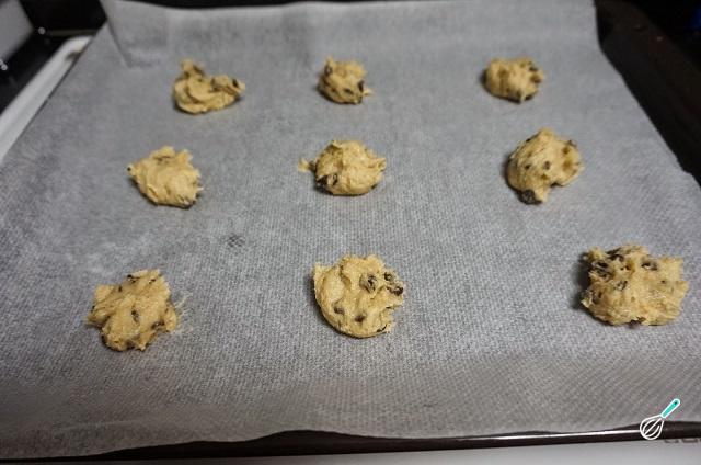 Forre um tabuleiro de forno com papel manteiga e coloque porções de massa com a ajuda de uma colher. Como estes biscoitos derretem bastante no forno não se esqueça de deixar espaço entre a massa.