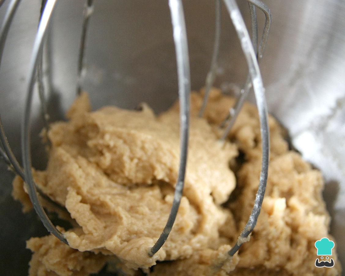 Para fazer estes deliciosos biscoitos de chocolate ao estilo americano você vai precisar de uma batedeira. Comece por bater bem a manteiga com os dois tipos de açúcar.