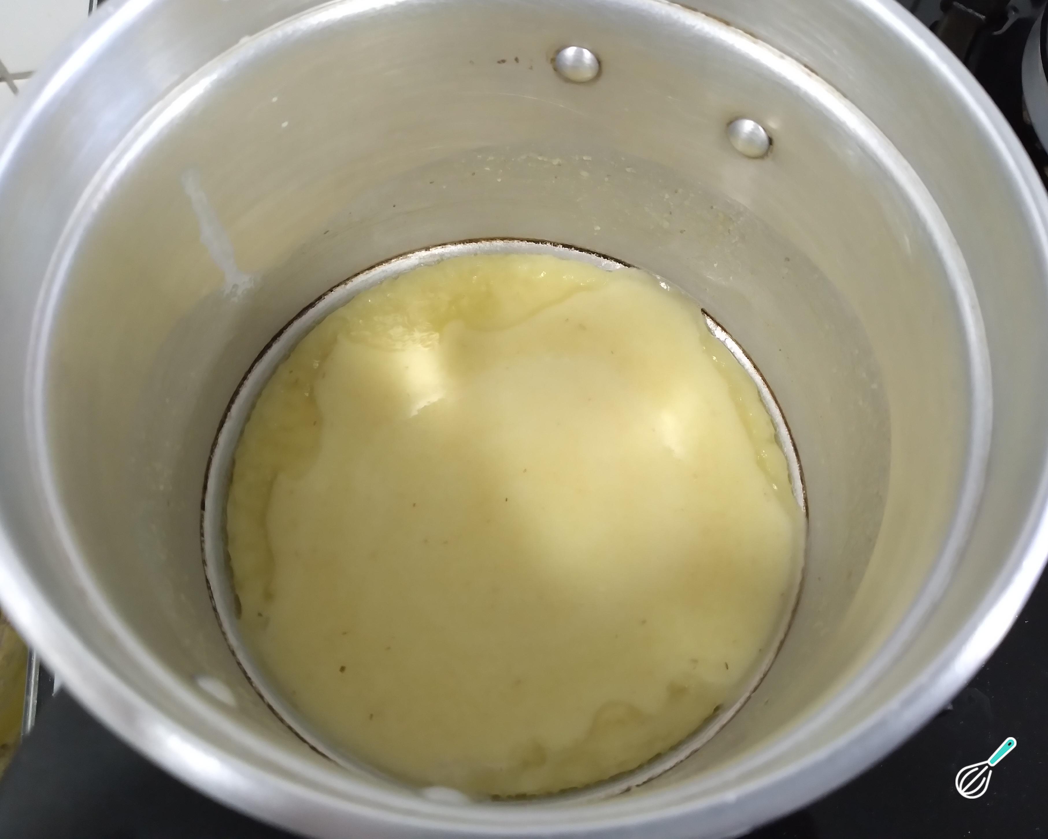 Enquanto a carne assa, em uma panela coloque o suco de abacaxi o amido de milho o açúcar e a pimenta. Leve em fogo baixo mexendo sempre até engrossar. Desligue e reserve.