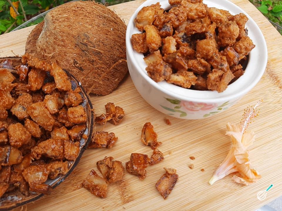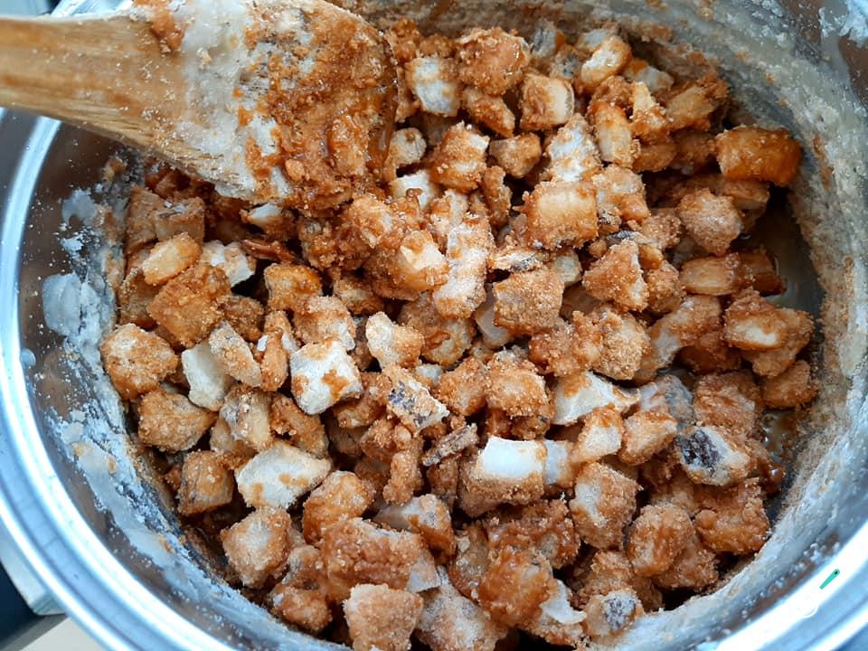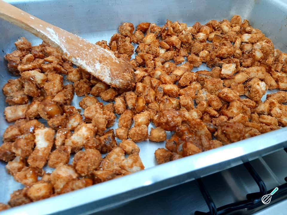 Quando o coco estiver caramelizado conforme mostra a foto abaixo, desligue o fogo.