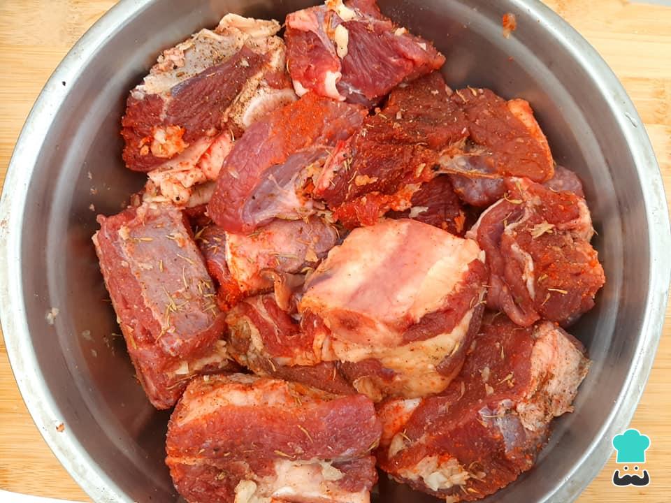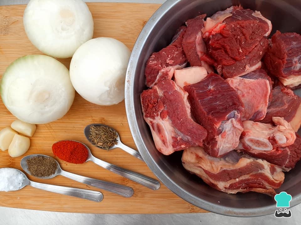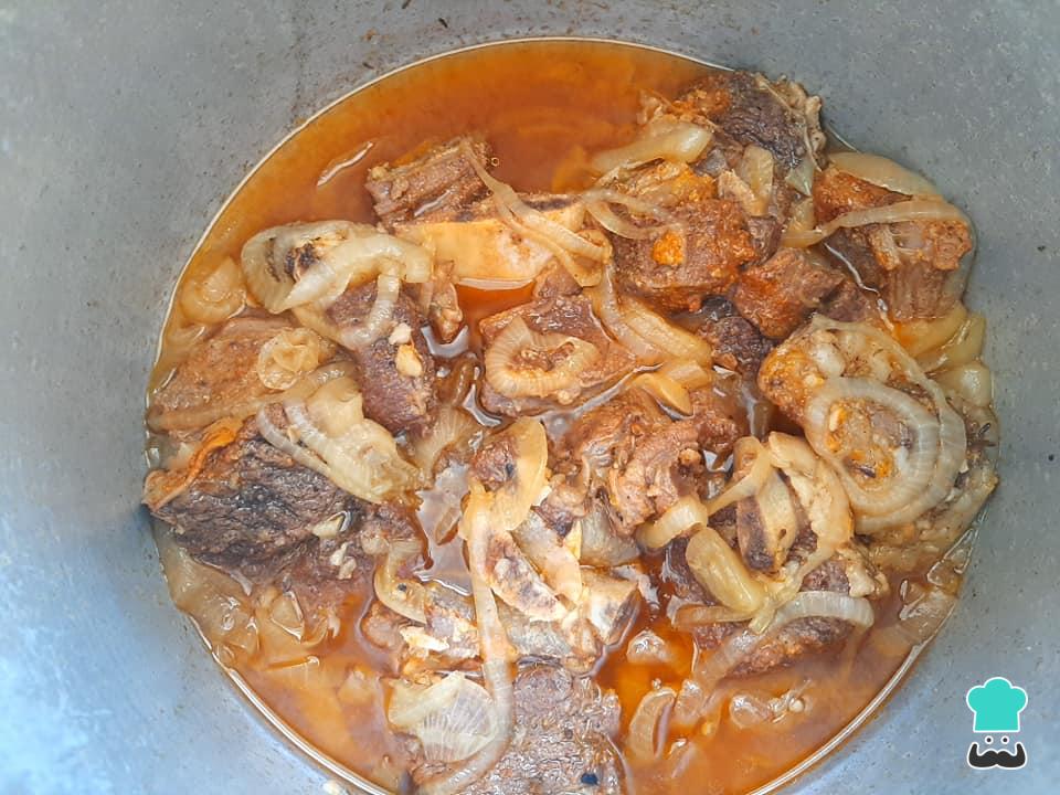Dica: a cebola fará um papel importante neste prato pois, além de conferir sabor, também irá liberar água para o cozimento da carne.
