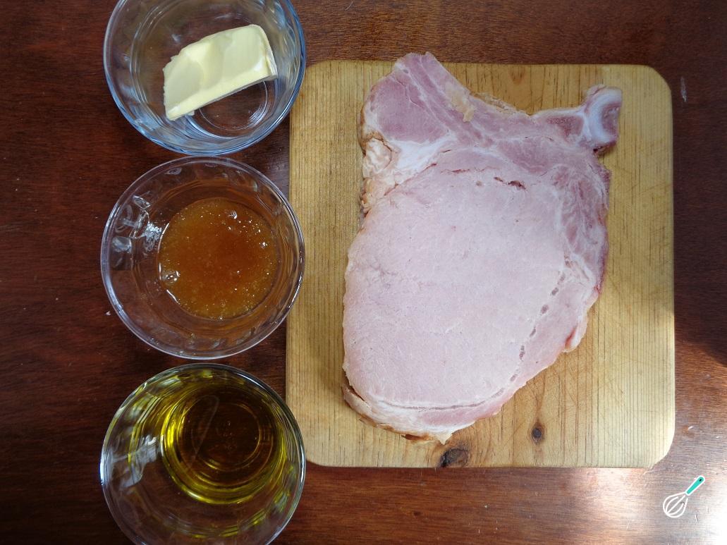 Na imagem abaixo, poderá verificar quais os ingredientes necessários, para preparar as suas costeletas de porco no forno com mel.