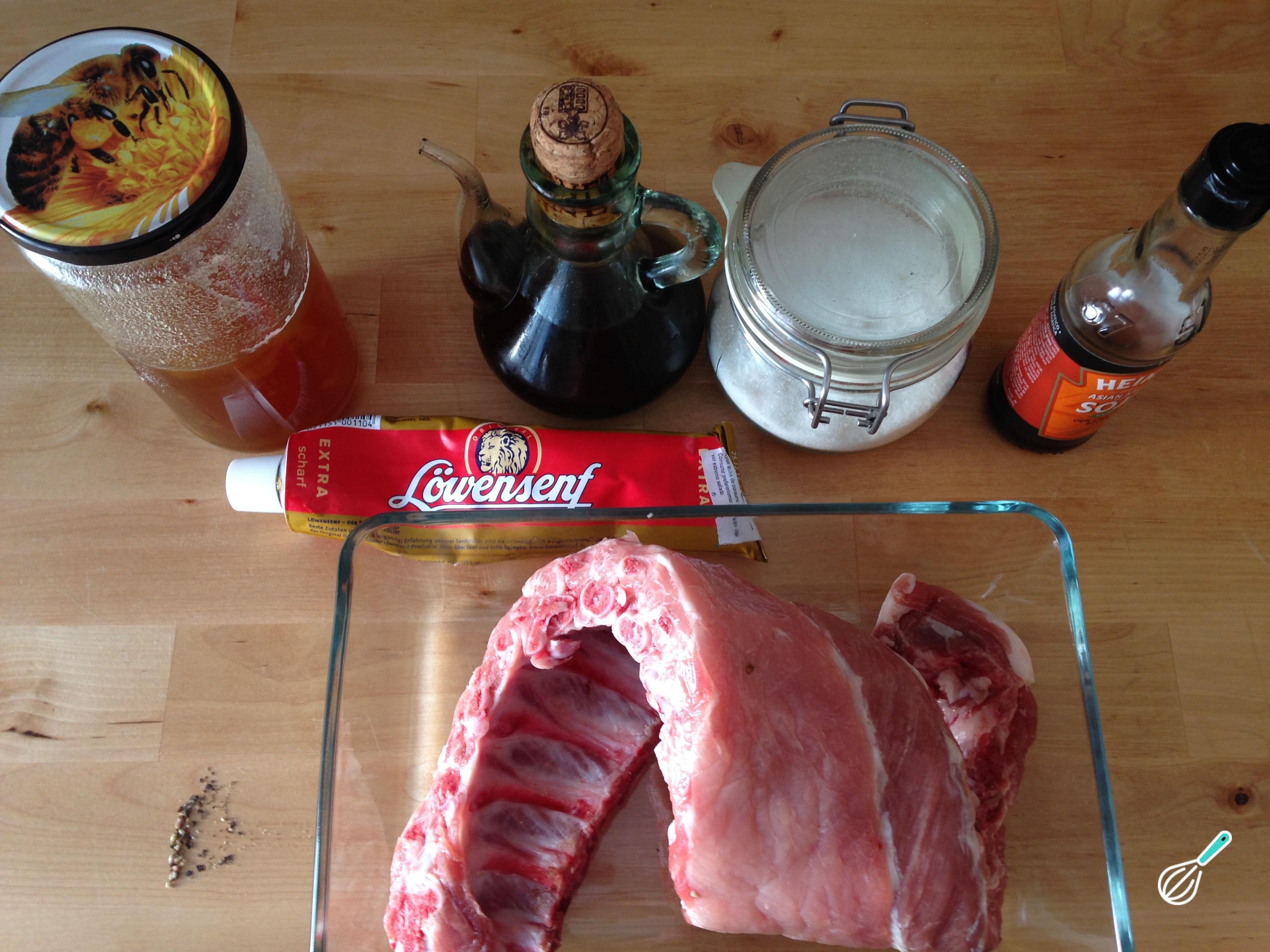 Como fazer Costelinha de porco assada com mostarda, shoyu e mel: