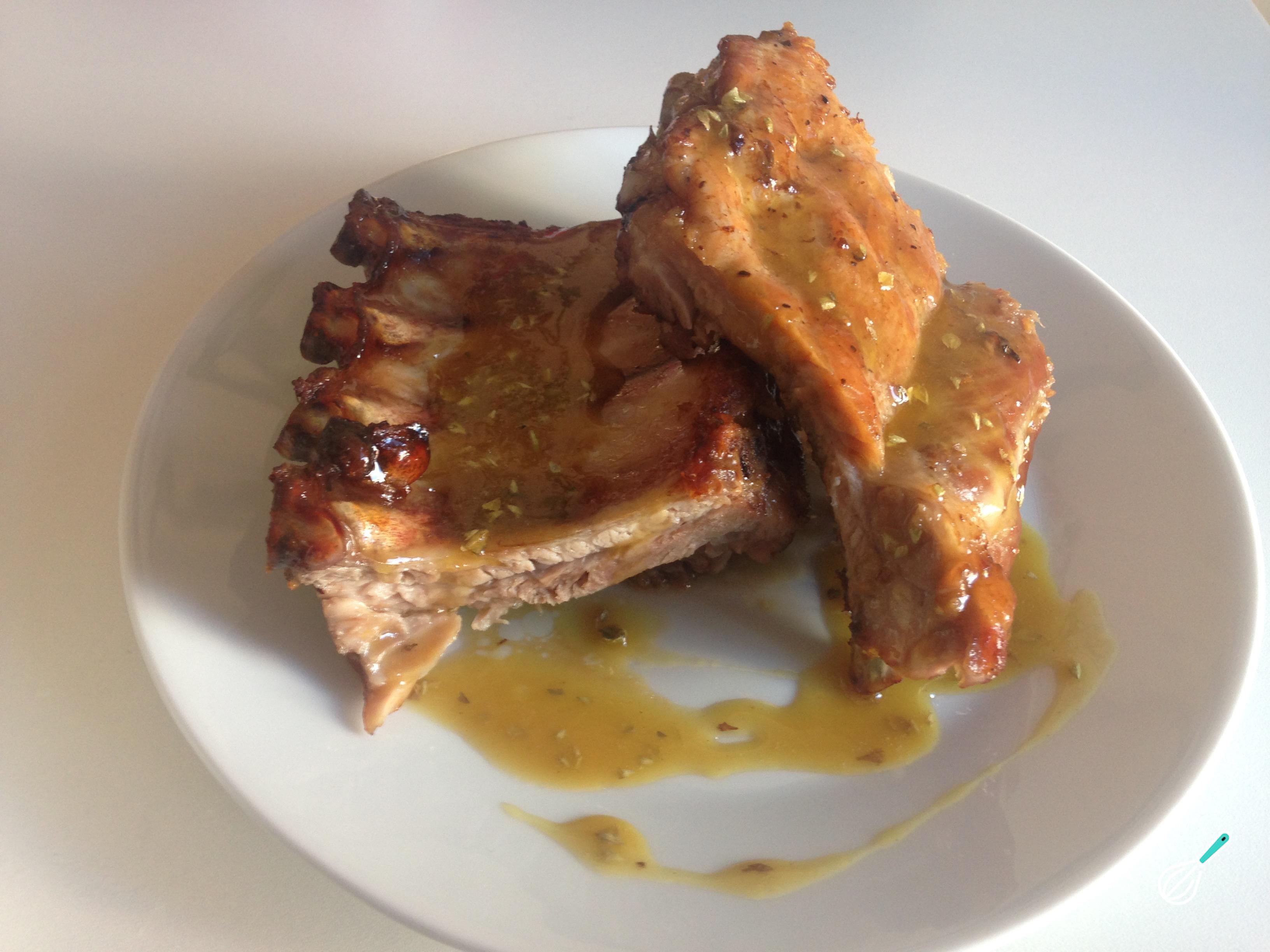 Receita de Costelinha de porco assada com mostarda, shoyu e mel