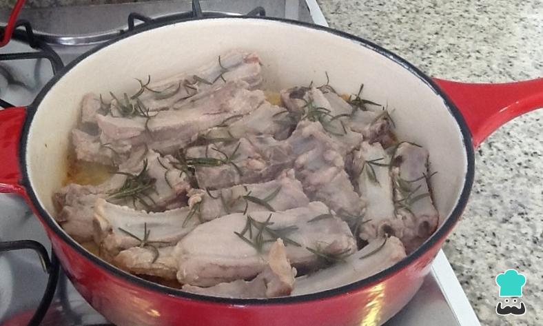 Comece por temperar as costelinhas com o alho amassado, o suco de limão, sal, pimenta do reino e alecrim. Reserve por 15 a 30 minutos.