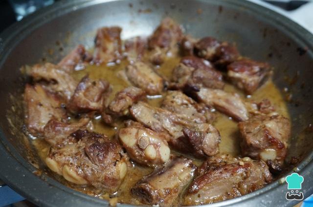 Por fim adicione o vinho e deixe ferver até reduzir. Depois junte o caldo, que pode ser caldo de carne, de legumes ou até de frango.