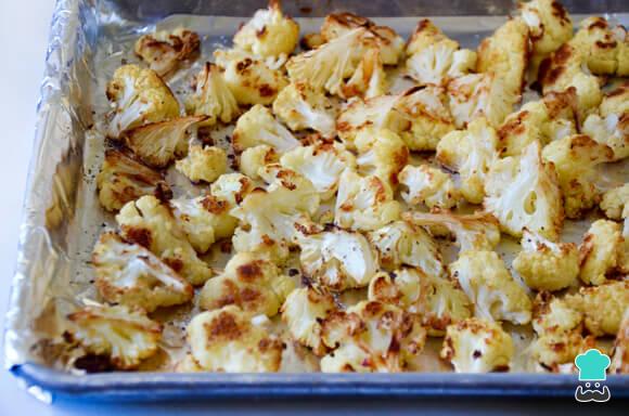 Dica: Para evitar que a couve-flor grude, coloque papel alumínio no refratário ou tabuleiro.