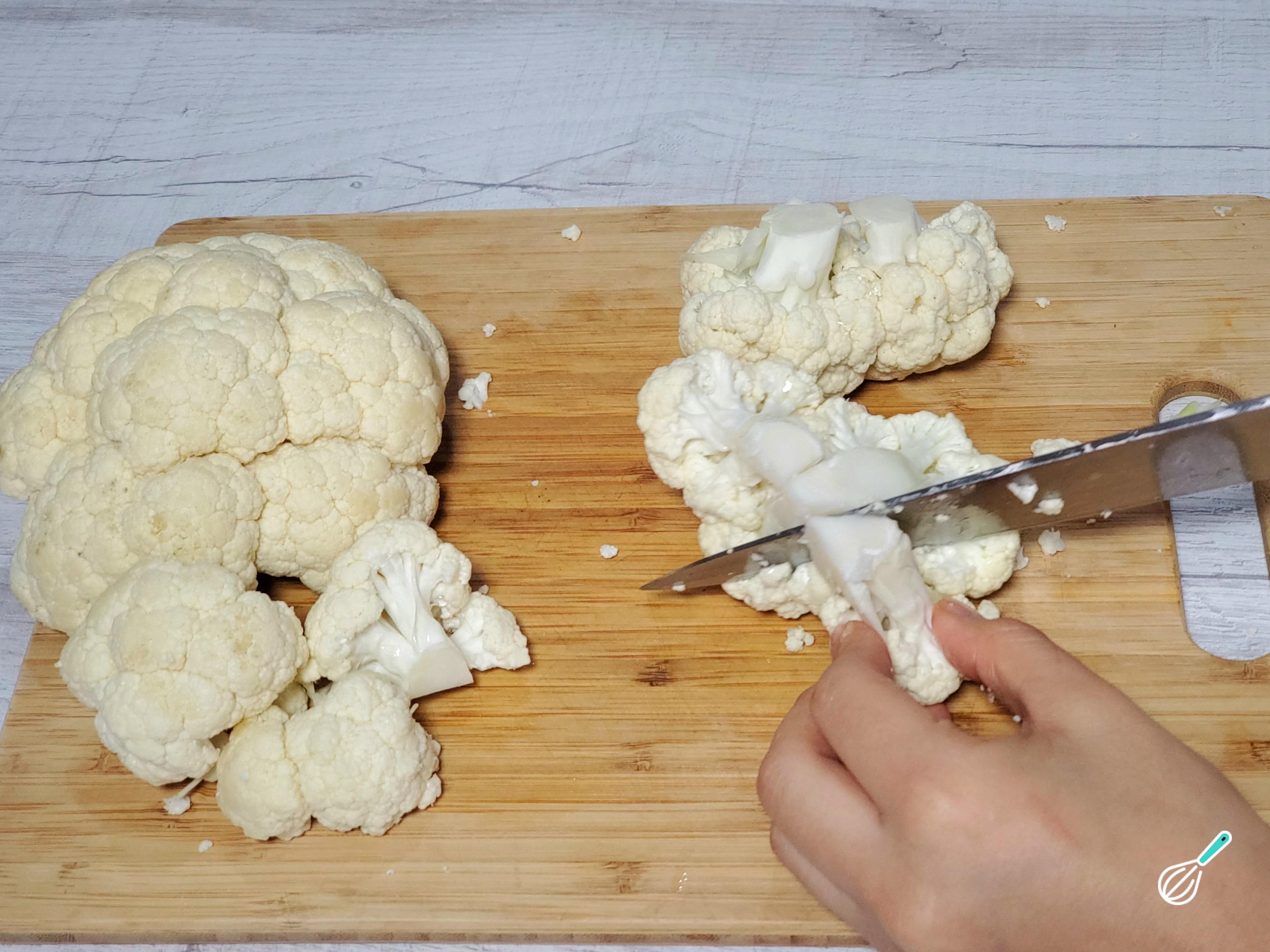 Comece cortando a couve-flor em buquês do tamanho de uma mordida e procure que sejam uniformes, para evitar que os menores cozinhem demais.