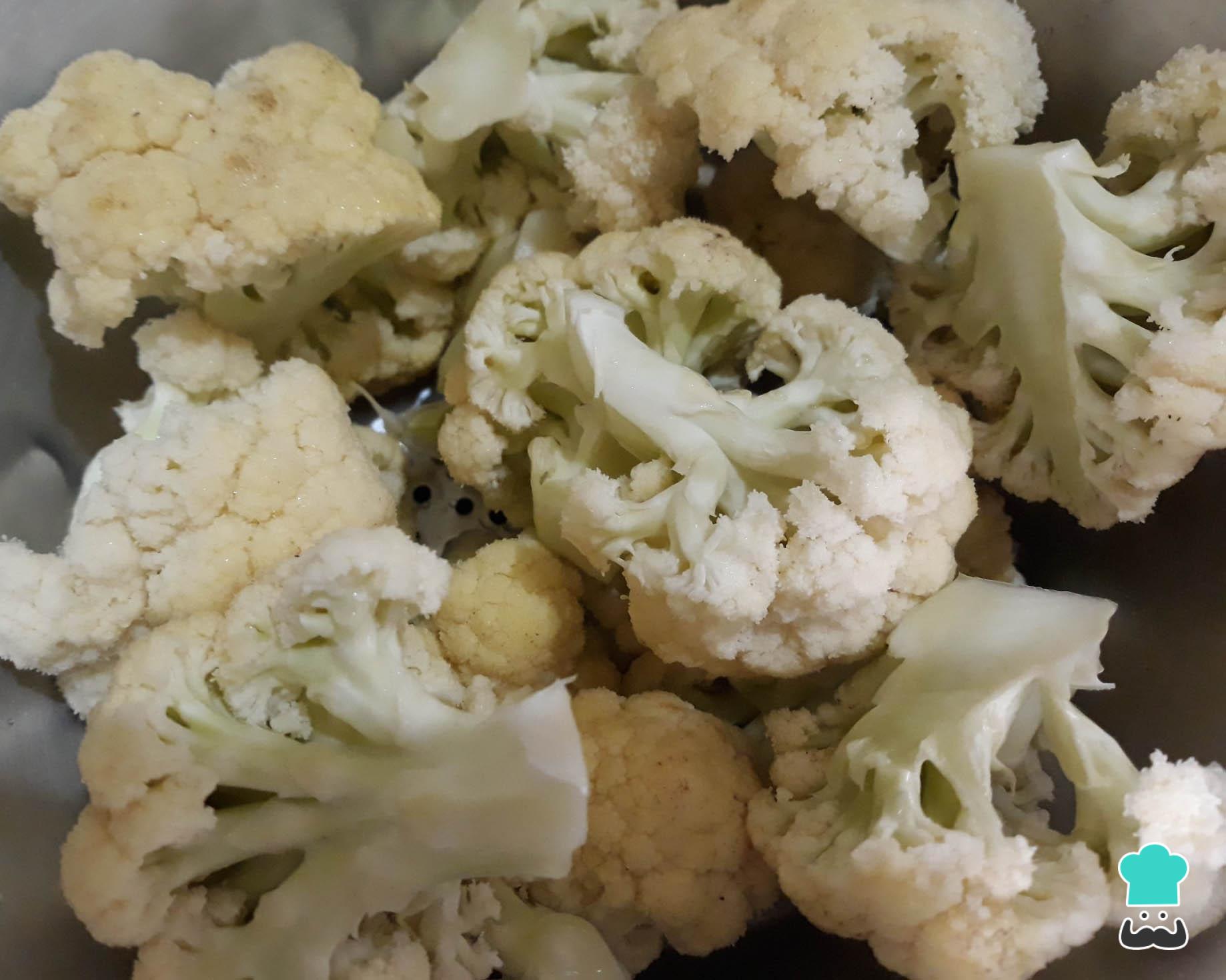 Limpe e corte a couve-flore em pedaços médios. Coloque para cozinhar no vapor por 10 minutos.