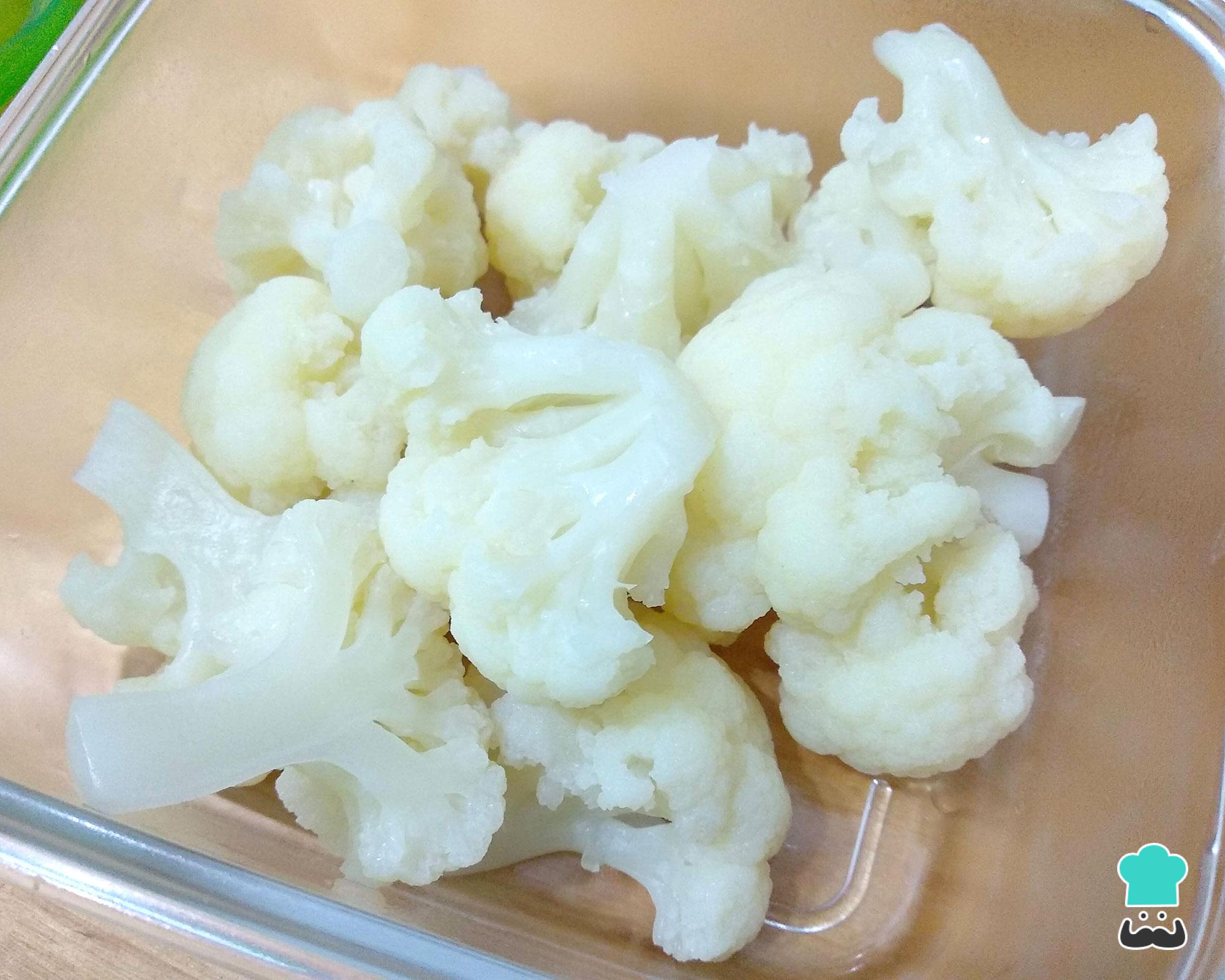 Dica: Após escorrer a água do cozimento, passe a couve flor por água fria para ela ficar mais firme.