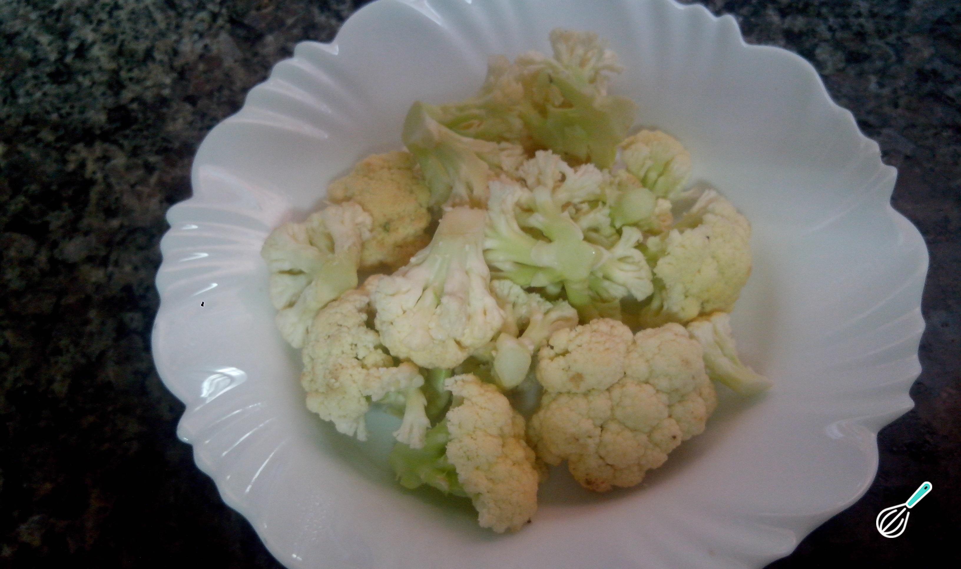 Para fazer esta receita de couve flor no forno comece por cortar a couve flor em pedaços e cozinhar numa panela com água e um pouco de sal por 5-10 minutos. Queremos que a couve flor fique macia mas sem desmanchar, já que terminaremos de cozinhar ela no forno.