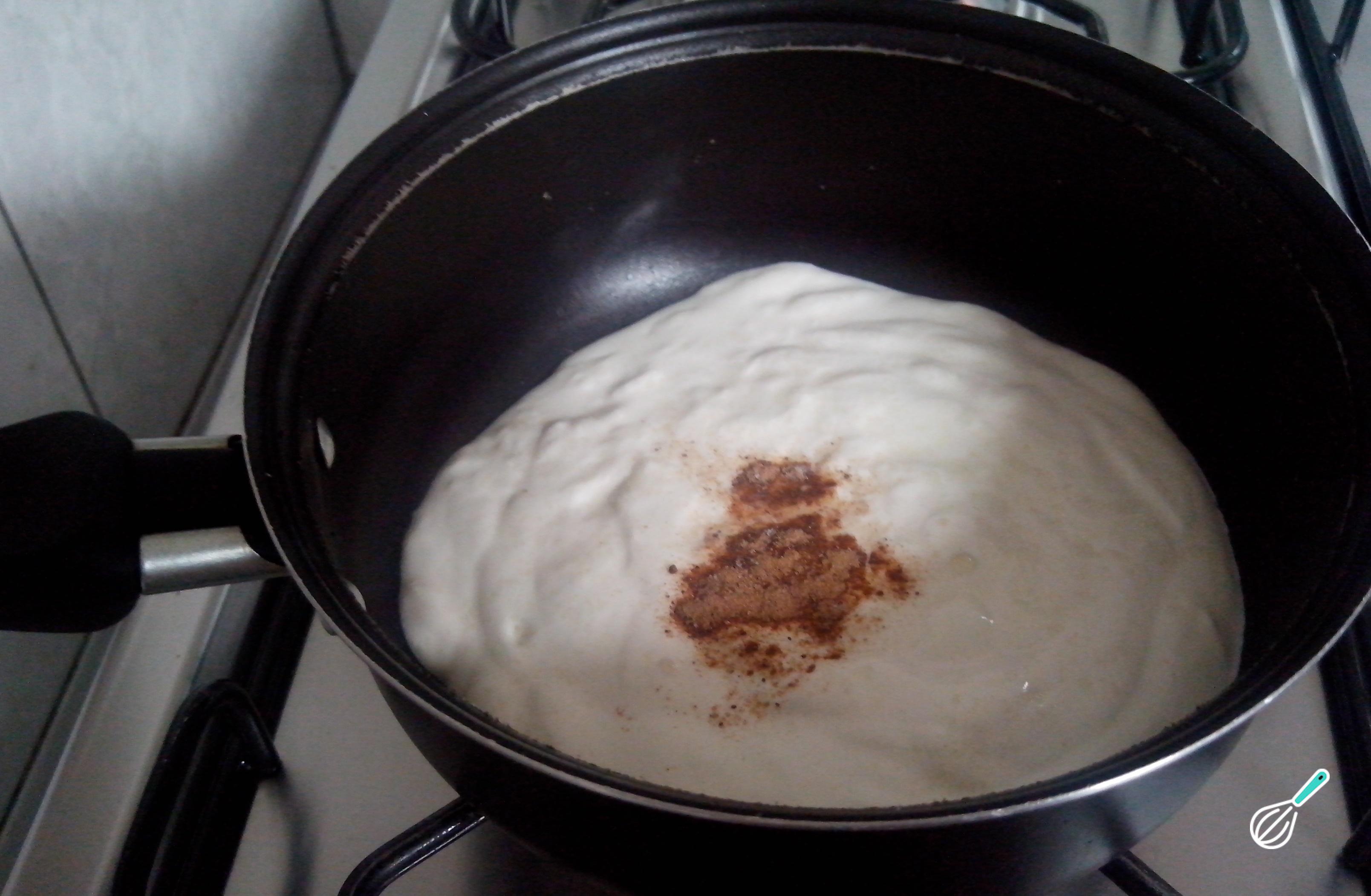 Para o molho junte em uma panela o alho amassado, o creme de leite, uma pitada de sal e a noz moscada. Leve ao fogo baixo e fique mexendo até o creme de leite começar a ferver.