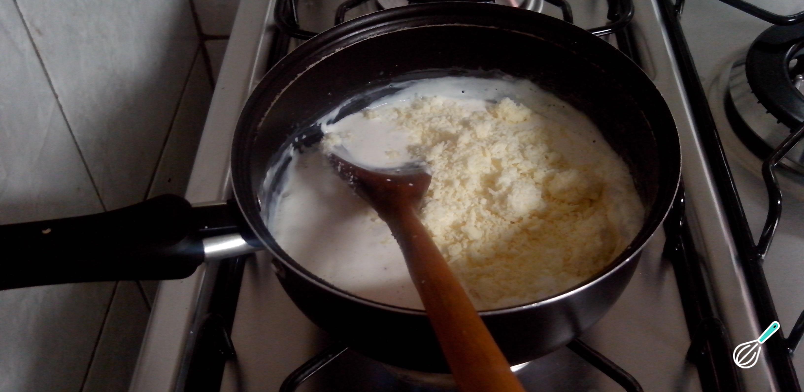 Quando começar a ferver junte o queijo, deixe derreter e pode desligar.