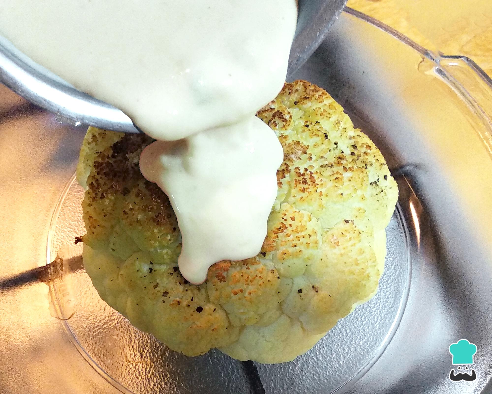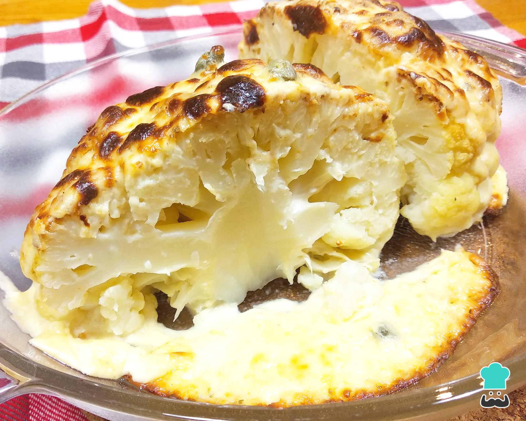 De tempos para cá as receitas de couve flor ganharam bastante versatilidade: tem couve flor panada, arroz de couve flor, couve flor recheada e mais. Uma dessas receitas tendência que atualmente encontramos no cardápio de vários restaurantes é a couve flor assada inteira, somente com um temperinhos simples ou acompanhada de um molho cremoso.