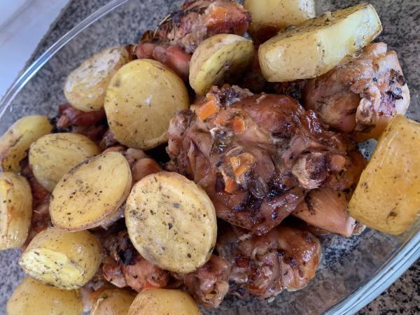 As minhas coxas ficaram deliciosas, mas o tempo para assar é bem maior do que o da receita, mesmo com a temperatura do forno mais alta. Para as coxas ficarem douradinhas é pelo menos 1h e meia. Assei batatas tb, ficou muito bom.