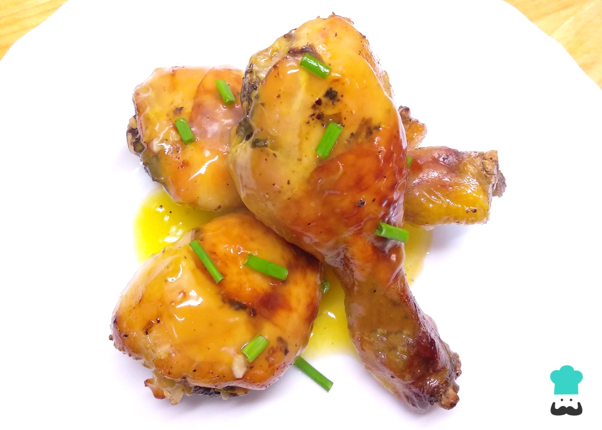 Retire as coxas de frango do forno e coloque num prato. Verta sobre elas o molho de laranja preparado no passo anterior, decore com cebolinha picada e está pronta sua deliciosa coxa de frango ao molho de laranja! Não hesite em preparar e dizer nos comentários o que você achou. Bom apetite!