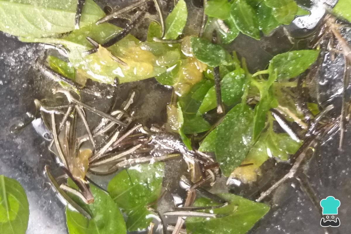 Para temperar a sua coxa de frango desossada em uma vasilha misture os temperos: o alecrim, o manjericão, o limão, o azeite e o sal a gosto.