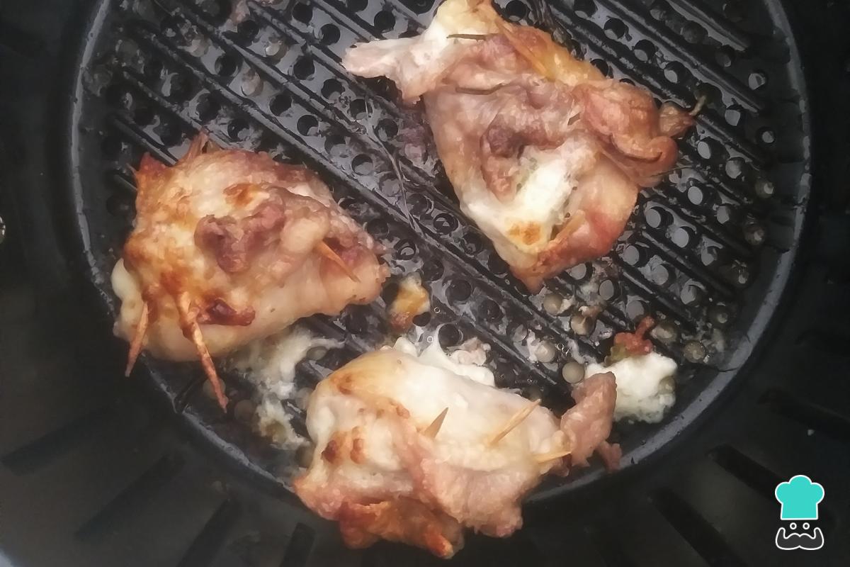 Neste caso fritei as coxas de frango na Air Fryer preaquecida a 200 graus e deixei por cerca de 20 minutos, virando as coxas a meio do tempo. Caso você não tenha uma fritadeira dessas, pode fritar a sua coxa de frango desossada normalmente em uma frigideira ou levar para assar no forno a 200ºC durante esse tempo.